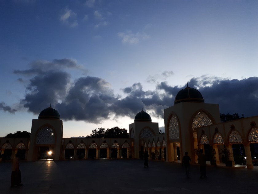 Usai mengikuti pengajian tersebut, bergerak melewati karpet merah, menuruni tangga dan berjalan menuju keluar. Tidak lupa mengabadikan sudut bangunan berlatar siluet langit disaat akan segera terbit.