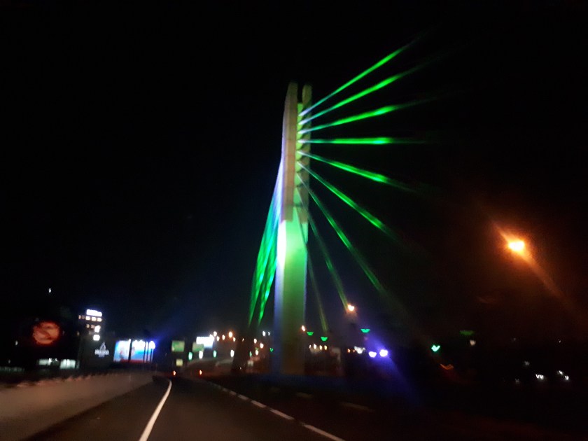Perjalanan pulang menuju bundaran HI trus ke Semanggi padat merayap, beruntung kenalan sama bos PDAM Kota Bandung, jadi bisa ngikutin tanpa bingung arah tujuan di jalanan jakarta yang masih membingungkan. Setelah masuk tol kota, kembali nyetir olangan ditemani malam yang telah berganti hari menjadi hari minggu, hari keluarga.