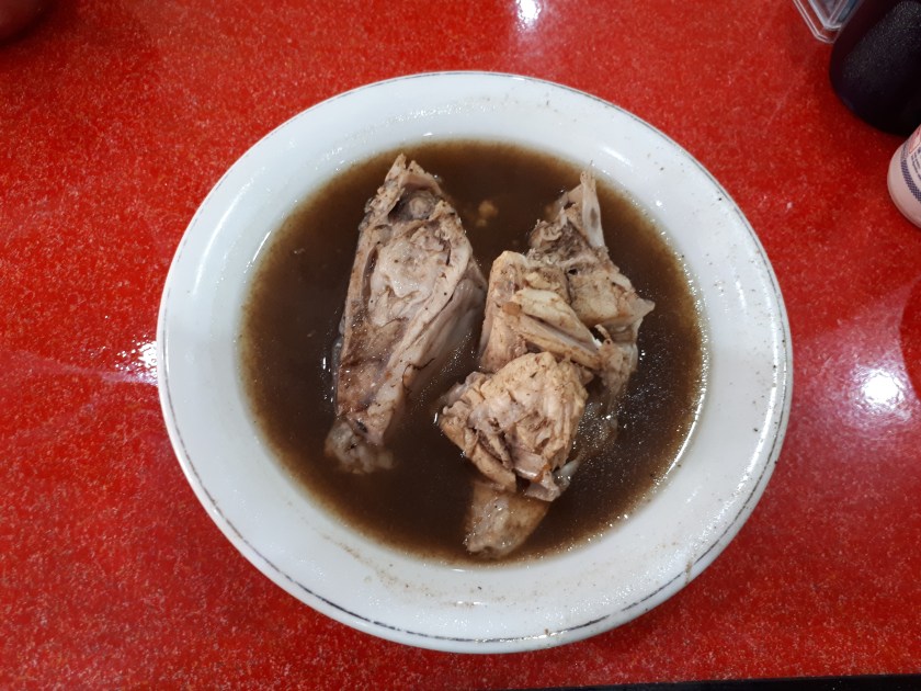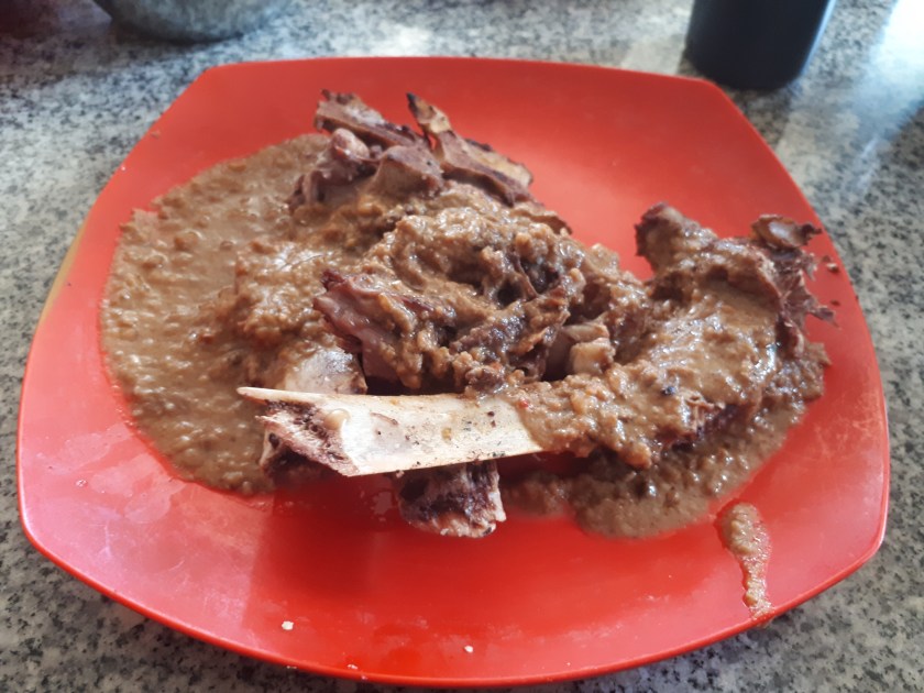 Ketiga, Sop sodara. Ini sop berkuah yang pilihannya kikil, daging, lidah, paru plus perkedel kentang yang tersaji panas dengan mangkuk kecil. Untuk tambahan ada telur asin yang disajikan terpisah. Yang terkenal enak terletak di jalan Irian (itu juga kata travel) dan ternyata enak bingit karena pas laper setelah seharian meeting dan kunjungan lokasi yang cukup melelahkan. Eh lupa, Nasi sebagai pendukung utama sop sodara ini. Tapi saya cukup sop sodara campur aja dan minta 2 porsi. Lupa nggak nanya harga, soalnya pas bayar langsung ditotalin.