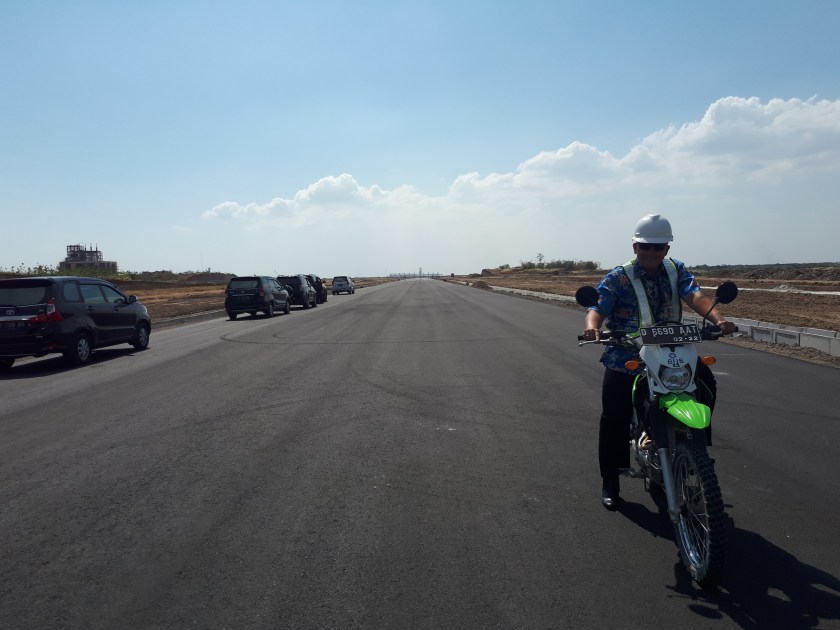 Sambil ngetest trek jalan akses bandara BIJB sekaligus udah lama nggak nunggangin roda dua. Mumpung yang lain lagi sibuk liat sitemap, buru-buru jajal si hijau ramping KLX… brumm. Brummm.