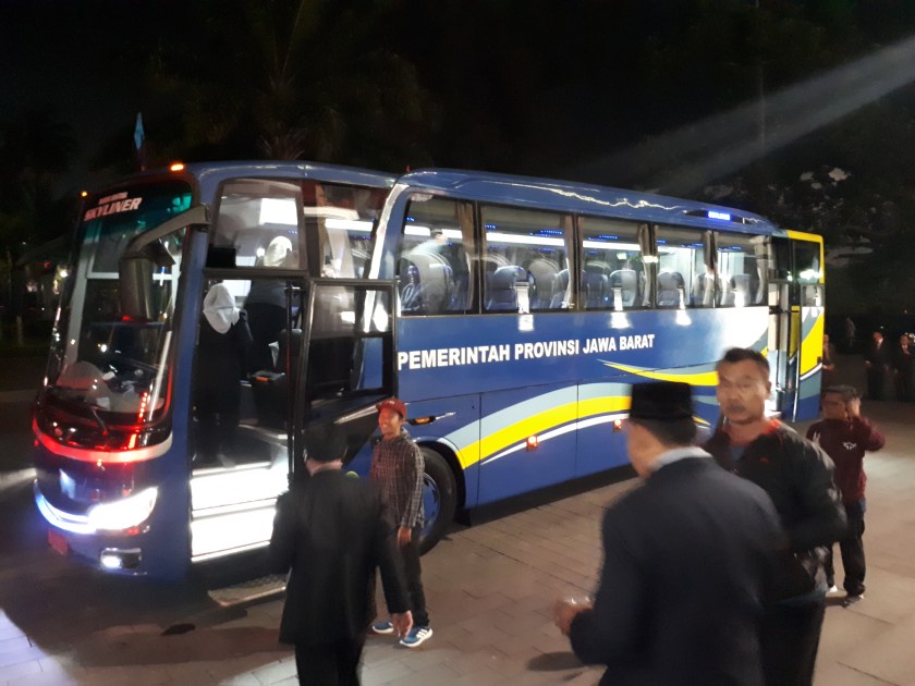 Pukul 23.00 semua bergerak menuju TMP Cikutra dimana upacara Renungan Suci akan dilangsungkan. Fasilitas negarapun kembali tersedia, bis – bis berbaris di depan gedung sate sudah siap mengantar para peserta upacara. Bisnya pun keren-keren lho. Tetapi yang menggunakan kendaraan pribadipun tidak dilarang, yang penting semua menuju ke lokasi renungan suci.