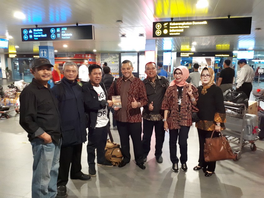 Puas puter-puter, rombongan bergerak ke gedung terminal bandara. Otomatis cari spot yang tepat untyk bikin orang lain terbang. Lho kok ngurusin orang lain bukannya gawe?… ih usil, gawe so pasti. Ini mah sisi lain. Opini pribadi, ntar laporan resmi dibuat.