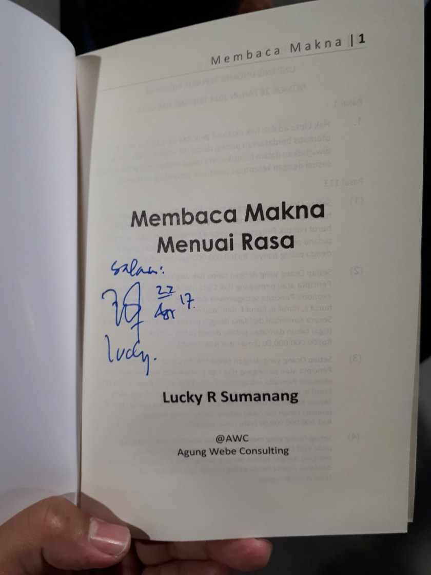 Setelah duduk manis bersabuk pengaman, Boeing 737-800 bergegas lari di landasan dan hitungan menit sudah goodbye dengan runway menuju langit pagi yang cerah meriah. Diatas awanlah sang buku bercover sunset mulai dibaca, dinikmati dan diresapi. Tulisan-tulisan sederhana sarat makna yang tercipta dari tangan dingin insinyur ‘murtad‘ yang bernama Kang Lucky R Sumanang dengan judul buku ‘Membaca Makna Menuai Rasa (M3R).
