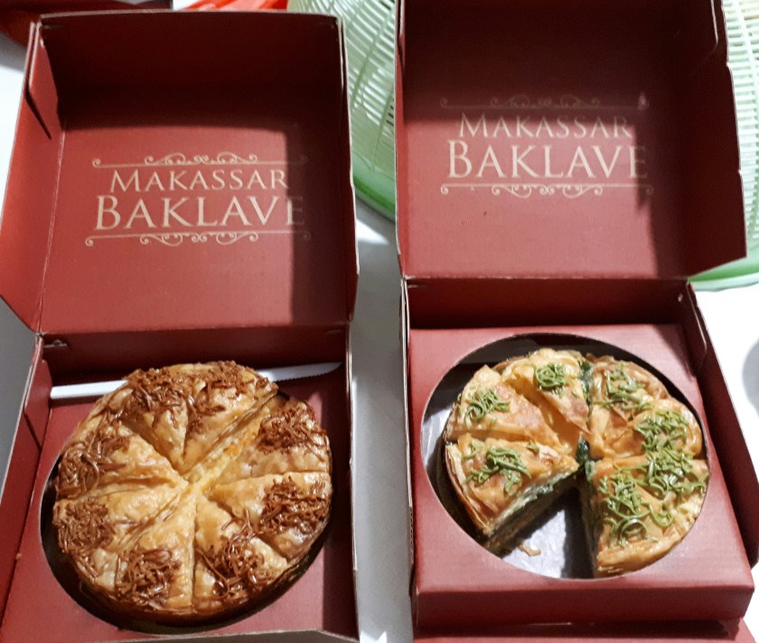 Kesepuluh, Baklave Irfan Hakim. Klo di Bandung Brownies Amanda lagi dikepung sama Makuta Laura CB, kue Princess sama kue.. lupa euy Mamanya Rafi Ahmad. Nah di Makasar ada Irfan Hakim dengan bakavenya. Tokonya di jalan Hasanuddin Kota Makasar, harga perkotak 65 ribu dengan varian rasa original, coklat, keju, grinti (green tea) dan kacang. Ya ikutan coba beli meskipun tinggal 2 varian. Ntar diicip di rumah sama istri, anak dan keluarga.
