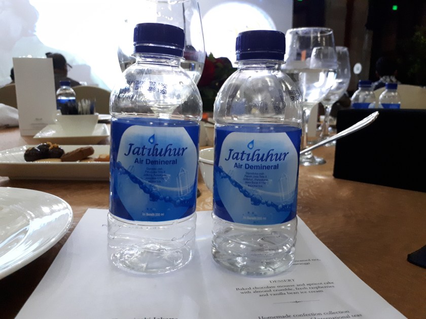 Ngemeng-ngemeng disinih nggak bakal bahas detail urusan acara yang pasti ada susunan serta agendanya. Tapi yang dibahas mah urusan hidangan atuh… kuliner hotel yeuh. Tabel manner tea geuning. Yang makan banyak aturan, beda-beda sendok dan pisau dengan sajian yang terdaftar. Yang klo mau makan lirik-lirik dulu, bisi salah pegang pisau atau sendok, soalnya sendok aja ada 3 model. Harap maklum aku mah penikmat kuliner yang tradisional, yang enaknya langsung pake tangan dicomot dan am. Klo ini mah penuh tatakrama dan jangan lupa lap putih berbentuk segitiga sudah siap diatas paha dimana sajian akan segers tiba.