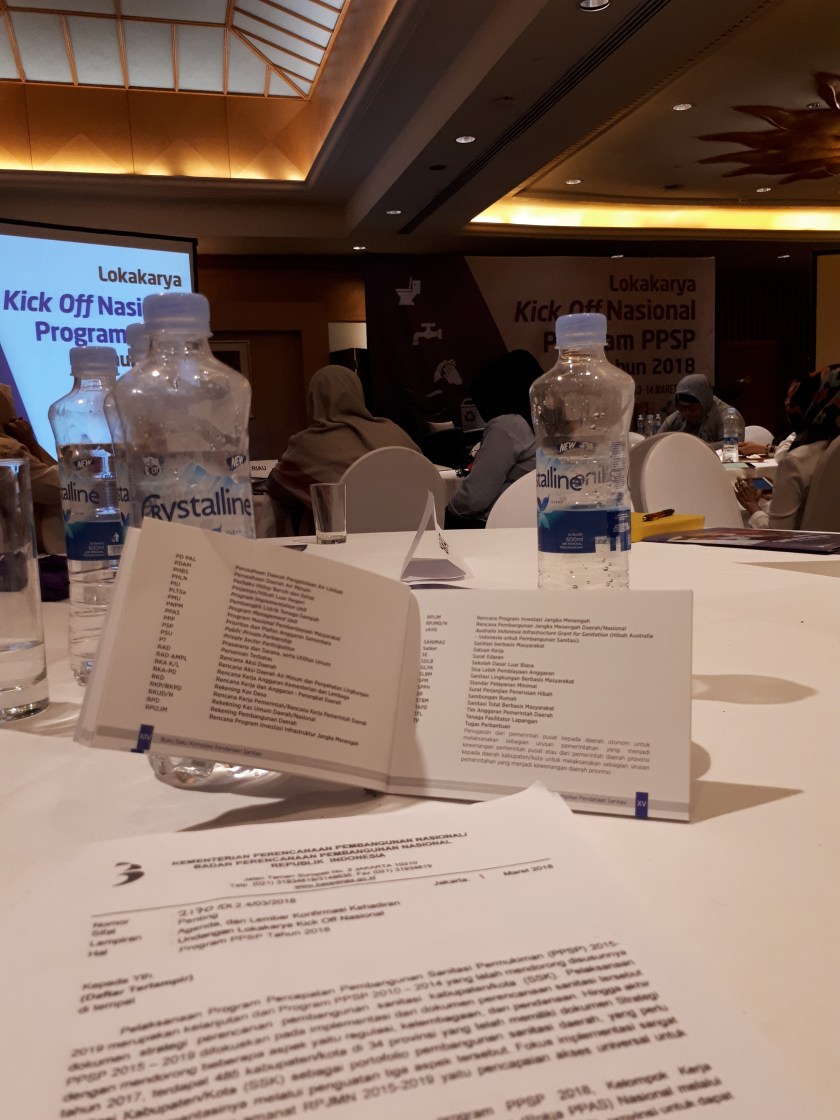 Maka rapat eh lokakarya dua hari ini dilaksanakan oleh Pokja Pembangunan Perumahan, Permukiman, Air minum, sanitasi (PPAS) Nasional melalui pengelola harian Program PPSP (Percepatan Pembangunan Sanitasi Pemukiman) mengundang seluruh pokja Sanitasi/AMPL provinsi seluruh indonesia. Wadduh jadi banyak singkatan geneeeh, tapi tetep kudu hafal dan paham, akhirnya masuk ruangan lokakarya lagi hingga hari kedua.