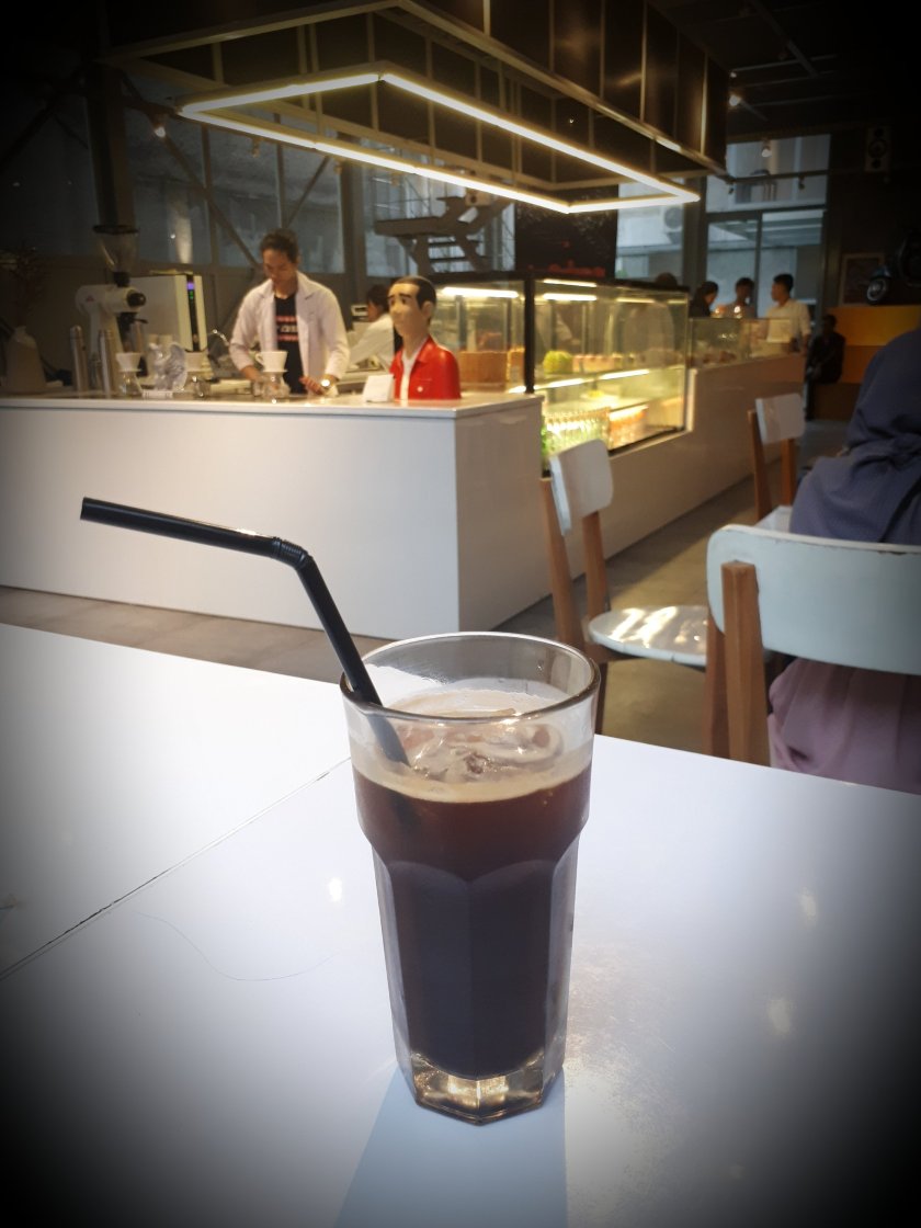 Padahal ceritanya adalah sajian kopi hitam tanpa gula dengan disajikan bersama ice batu yang diformat longblack. Tadinya moo pesen manual brew specialty coffee di Cafe Sejiwa, eh ternyata habis. Langsung banting setir pesen Longblack aja.