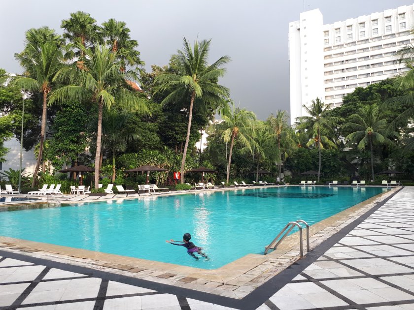 Nah disini, di kolam renang Hotel Borobudur Jakarta, kedalaman kolam renangnya dimulai dari 1,4 meter, 1,5 meter, 1,6 meter dan terakhir paling ujung timur kolam kedalamannya 3,8 meter.