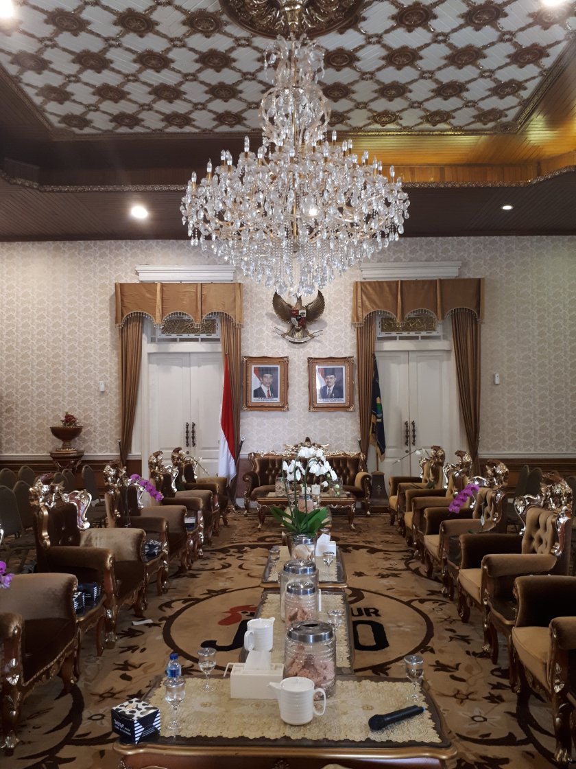 Tuntas dari situ, segera bergerak menuju pendopo, rumah dinas bupati yang anggun dan penuh nilai ornamen bangunan kerajaan masa lalu, disitulah sebuah acara akan terlaksana.
