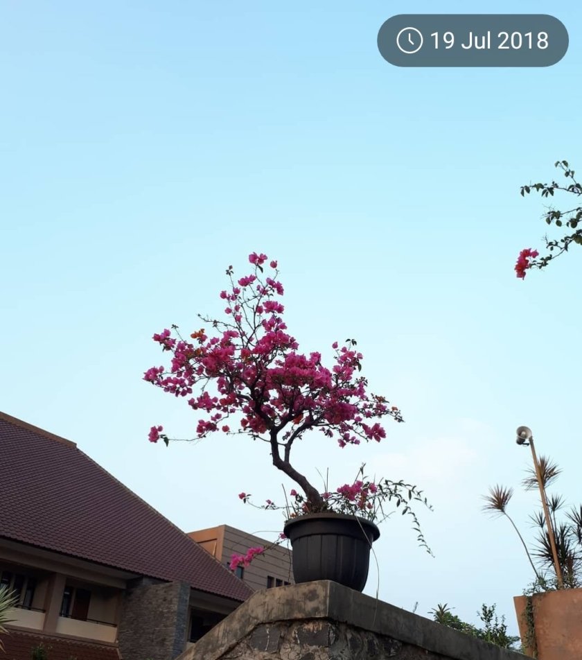 CIMAHI, akwnulis.com. Tiba-tiba sebuah photo hadir di layar smartphone, sebuah keindahan yang diwakili pohon bunga kertas ungu diatas pot yang seolah biasa saja.