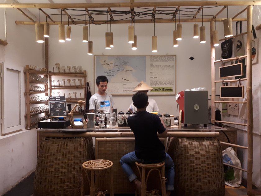 Yang menarik, setelah kami duduk di kursi sambil ngobrol, sang barista mendekat dan menanyakan kesan kami terhadap sajian kopinya.