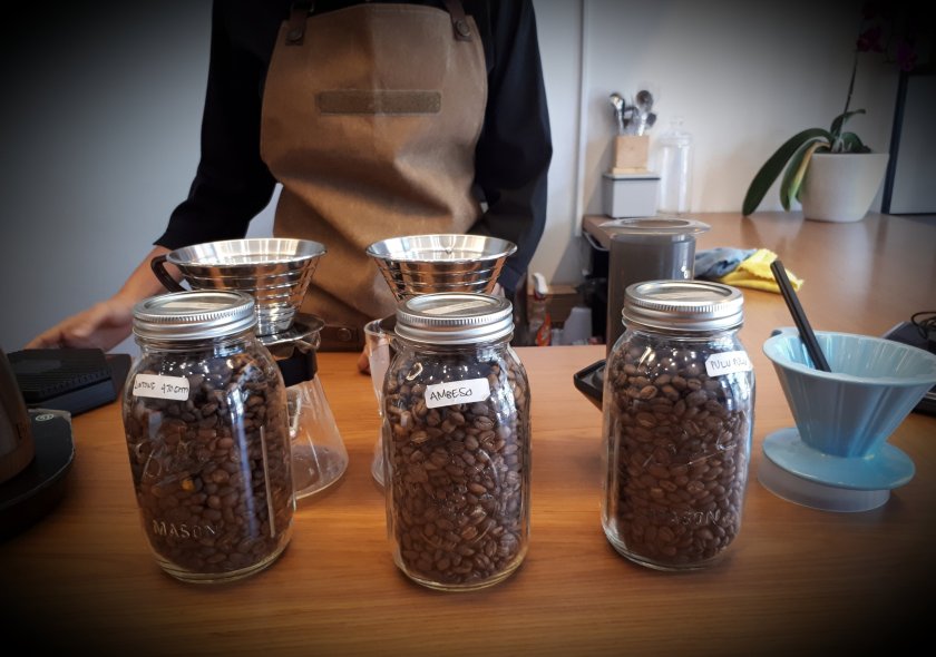 Segera sang baristi beraksi membuat sajian manual brew pertama dengan filter v60, suhu 92° celcius menjadi pilihannya dan biji yang digrinder kasar adalah arabica toraja ambesso.