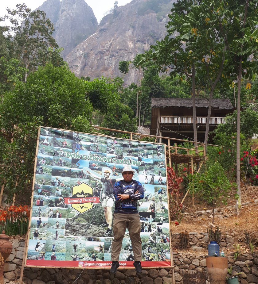 Tidak lupa berpose dulu dengan background spanduk Badega dengan berbagai photo pendakiannya… semangaaat, serasa adrenalin di dalam raga ini bergerak cepat dan detak jantung petualangan kembali berdegup lebih kencang dan perasaan tertantang begitu besar, Bismillahirrohmannirrohim.