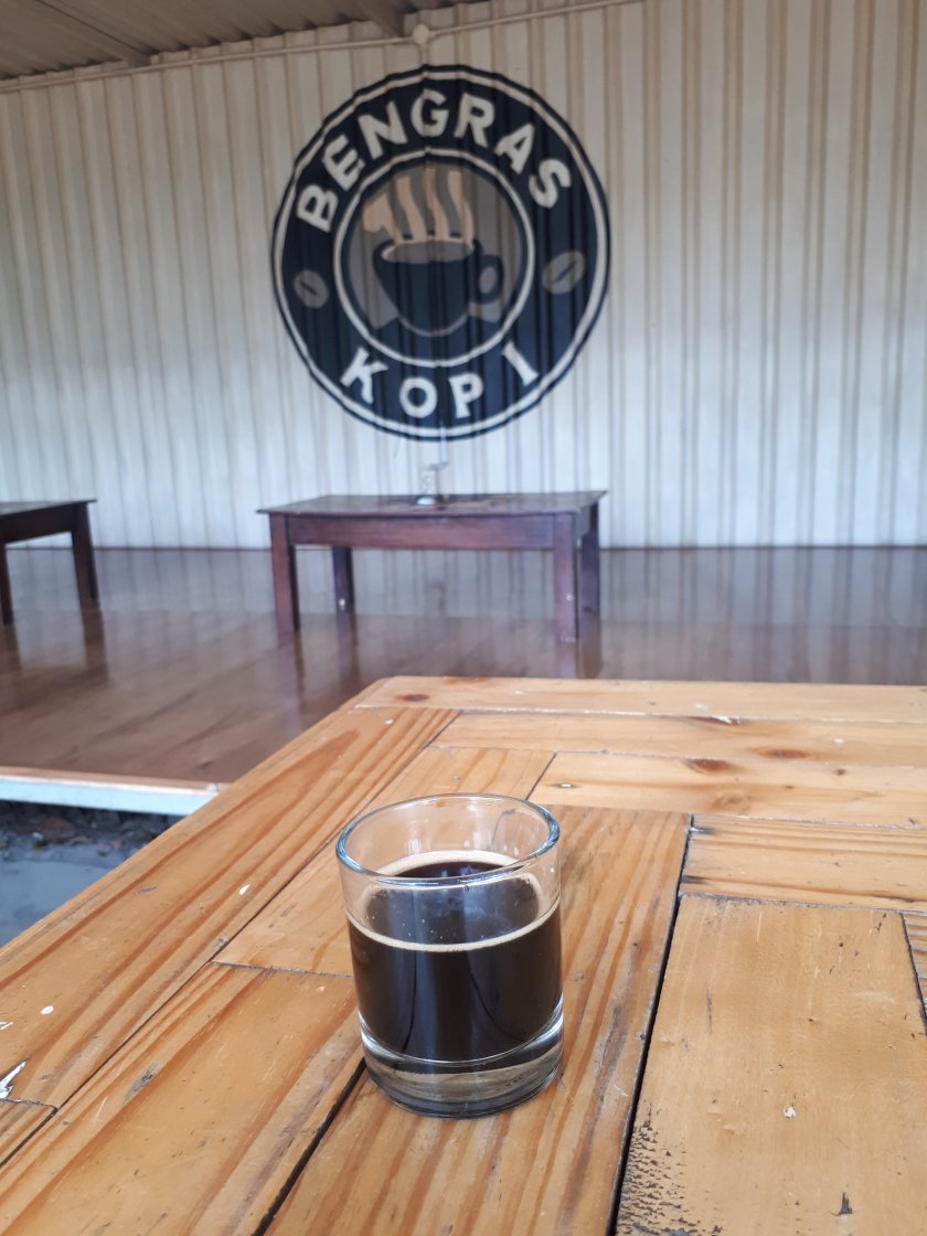 Nama kedai kopinya adalah Bengras kopi, yang berasal dari bahasa sunda. Béngras itu artinya segar dan jelas, atau cénghar…. ih bahasa sunda lagi… cénghar itu…. ya segaar… jagjag waringkas.