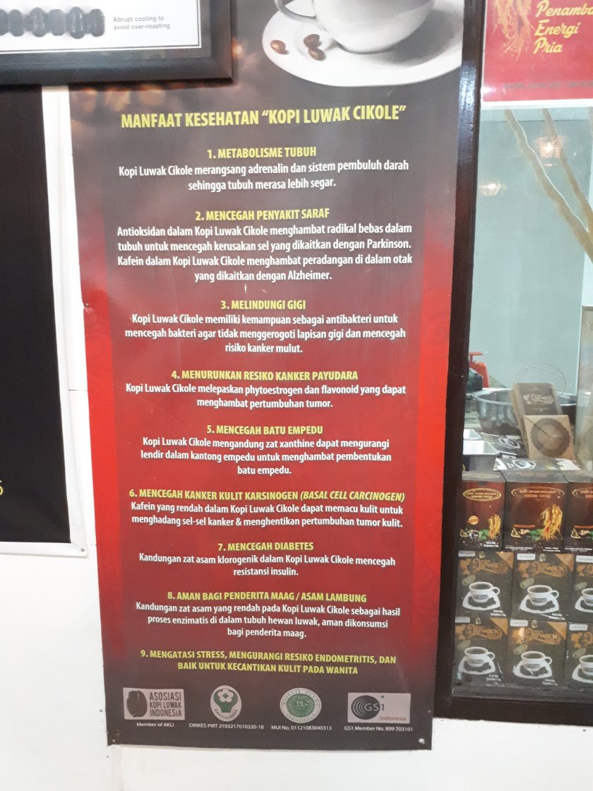 Sebelum masuk ada juga kios merchandise tentang kopi luwak lembang ini dari mulai gantungan kunci, cangkir juga kaos-kaos. Tapi karena tujuan utamanya adalah menikmati kopi spesial maka langsung menemui petugas pelayan dan tanya sana sini.