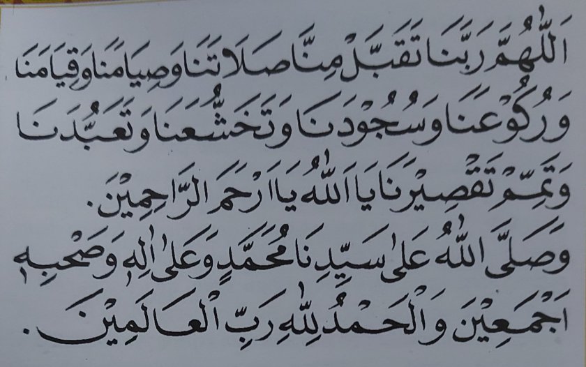 Ya ALLAH Tuhan kami, semoga engkau terima Shalat kami, Puasa kami, Berdiri – Ruku dan Sujud kami, Khusyu & Rendah hati kami, dan Sempurnakan Kekurangan kami, Ya ALLAH Tuhan kami yang Maha Pengasih.