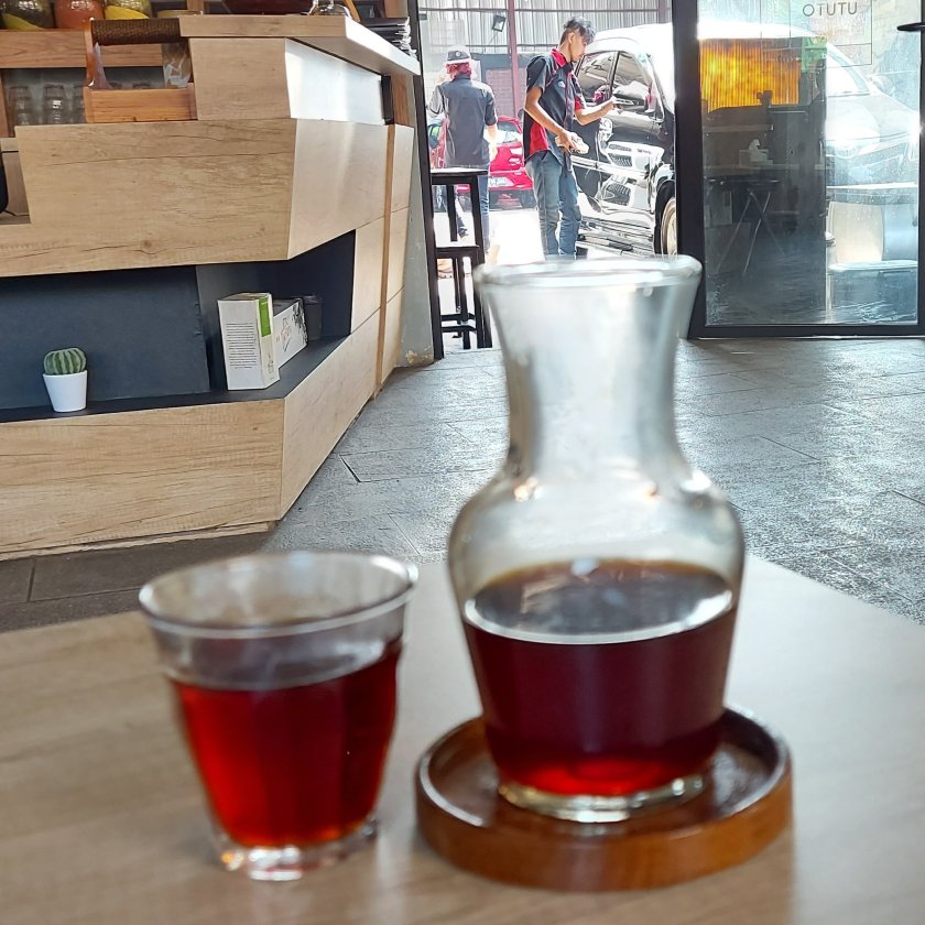Ya mirip-mirip kopi tubruk dengan pola penyajian berbeda. Ada selarik rasa rempah tapi agak sulit mendefinisikannya… sudahlah… sruput ajaaa. Alhamdulillah, Wassalam(AKW).