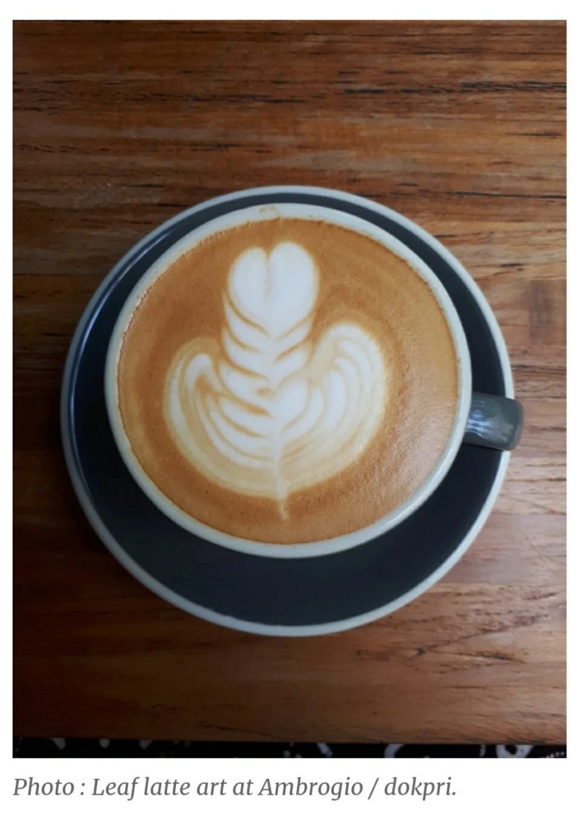 4. Lattee bergambar daun (leaf) kayaknya sudah standar yach, rata-rata cafe bisa menyediakannya. Tapi itupun gambar daun tertentu. Sementara reques gambar daun pintu dan daun telinga belum ada yang bisa membuatnya diatas cangkir latte yang tersaji dan terakhir…