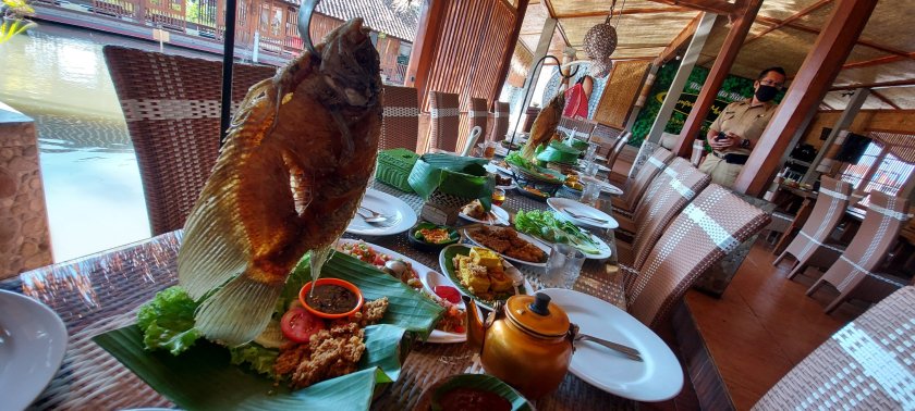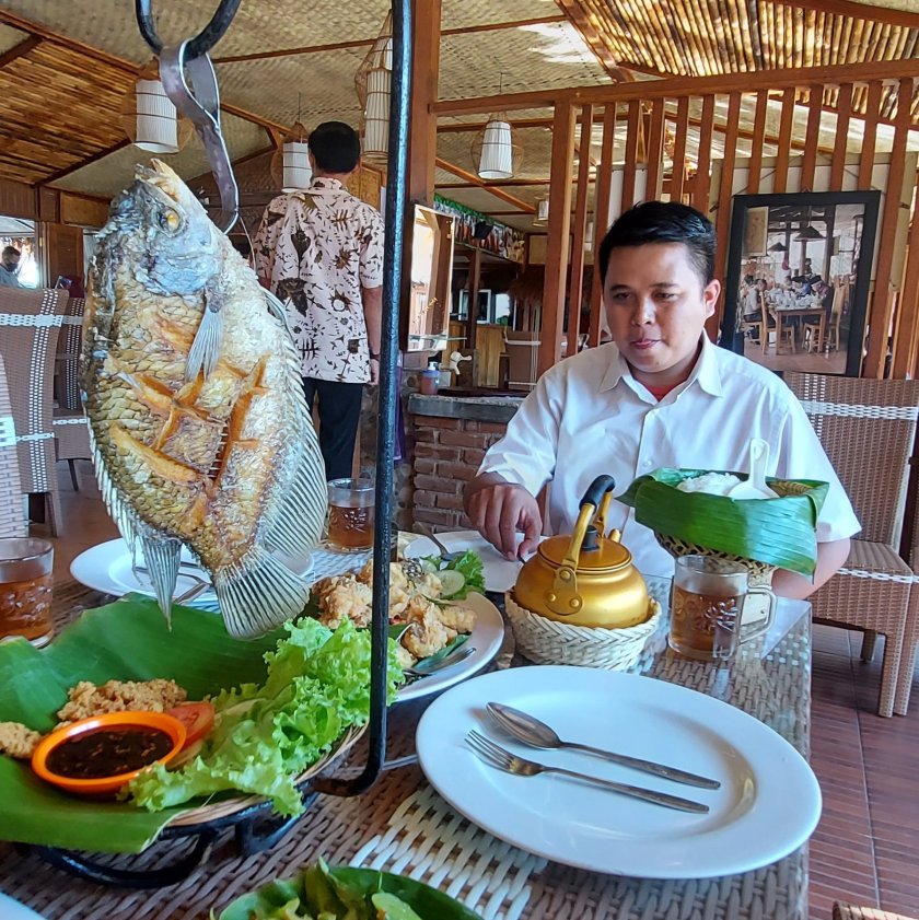 Selanjutnya sajian makan siang yang begitu banyak pilihan, tak bisa mengelakkan wajah terhadap ikan goreng yang berdiri menantang. Seolah memberi peluang untuk mencurahkan dendam dan kemampuan.