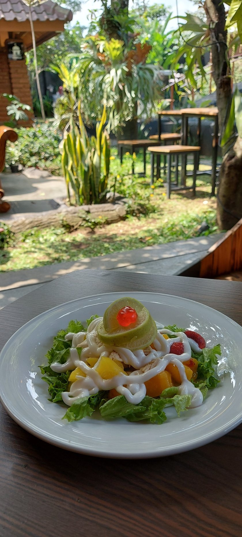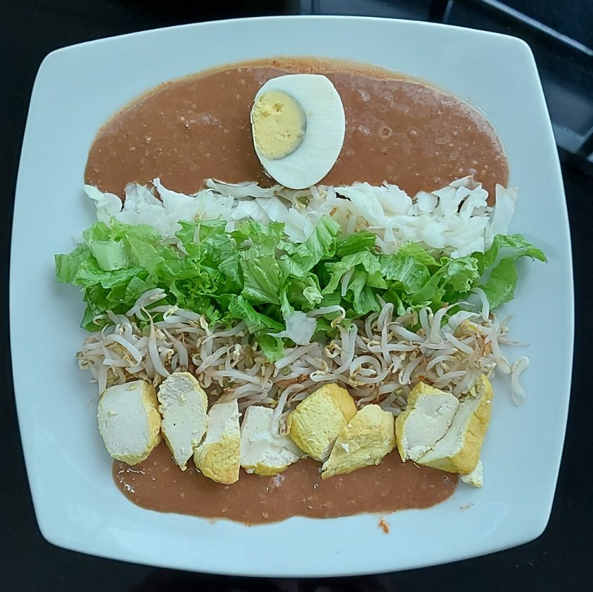 BANDUNG, akwnulis.com. Jikalau postingan yang lalu penataan gado-gado dalam rangka makan siang itu menggunakan model radial karena masih terbiasa dengan putaran seduhan kopi manual menggunakan teko leher angsa, maka kali ini mencoba menata dengan berbaris berjajar diatas piring putih bersih sebersih suasana hatiku kali ini kepadamu… cieeeh, maksa ih.