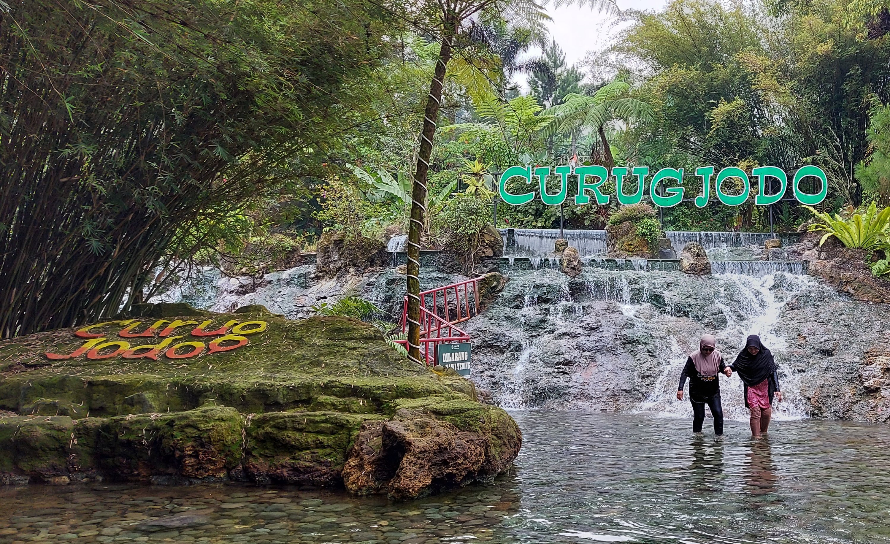 Leumpang ngurilingan curug bari babacaan sabisa-bisa, sugan wè sakumaha ngaranna. Bisa gancang mèrè gantina. Nu ngaliwat marelong, kunaon èta jelema. Geus teu kaitung kukurilingan dina balong leutik nu dingaranan Curug Jodo, ogè tètèrèkèlan dina gawirna.