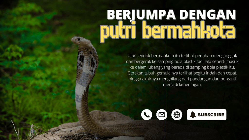 Ular sendok bermahkota itu terlihat perlahan mengangguk dan bergerak ke samping bola plastik tadi lalu seperti masuk ke dalam lubang yang berada di samping bola plastik itu. Gerakan tubuh gemulainya terlihat begitu indah dan cepat, hingga akhirnya menghilang dari pandangan dan berganti menjadi keheningan.