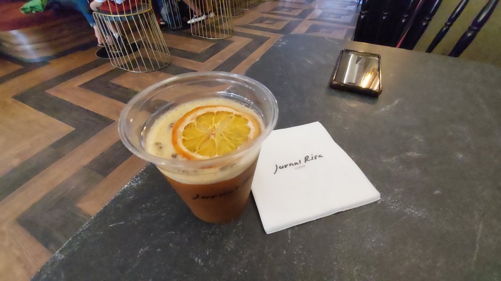 5. Mandarin Americano Berbeda juga nama sanian kopi dan lemon di Cafe Jurnal Risa jalan Braga Bandung. Ini jeruknya memggunakan jeruk mandarin campurannya ditambah irisan jeruk mandarin yang dibakar dan diletakkan diatas kopi jeruknya.