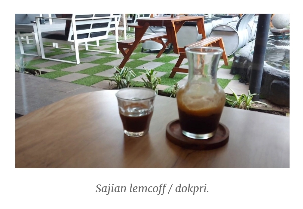 1. Lemcoff Pertemuan pertama dengan sajian lemcoff ini sudah sekitar 1 tahun lalu tepatnya di bulan maret 2022 dimana seorang kawan memesan pada saat meeting di sebuah cafe di Cimahi selatan yaitu Cafe OTUTU. Sajiannya simpel dan memang tersaji dingin dengan mengunakan es batu dan jelas hasil kocokan antara espresso tambah lemon serta sirup gula. Rasanya menyegarkan, pahitnya tertutupi rasa manis asam segar dari lemon. Tapi buatku memang terlalu manis karena memang standarnya kopi hitam tanpa gula (kohitala) saja yaitu manual brew V60 dengan beannya adalah arabica manglayang.