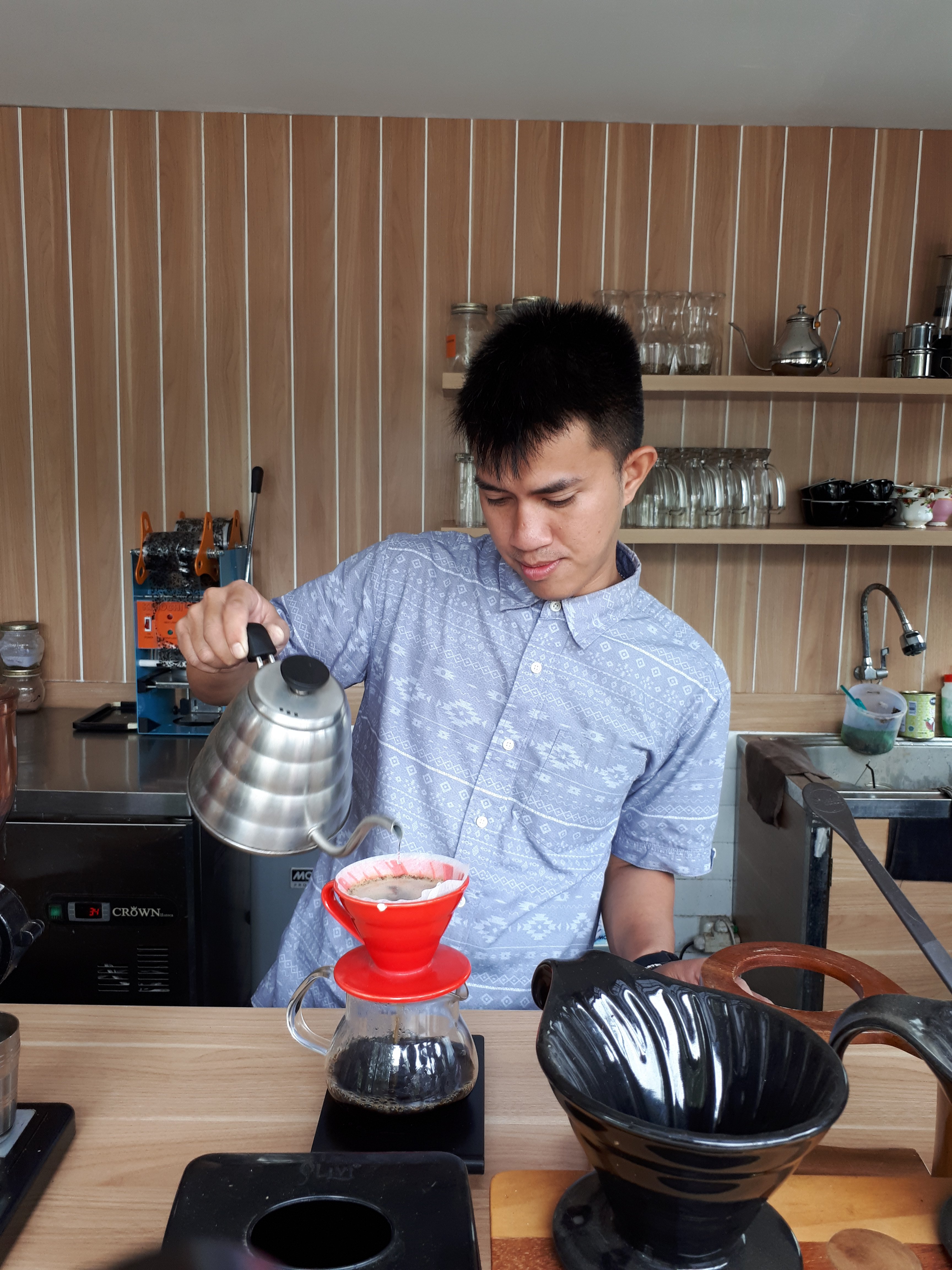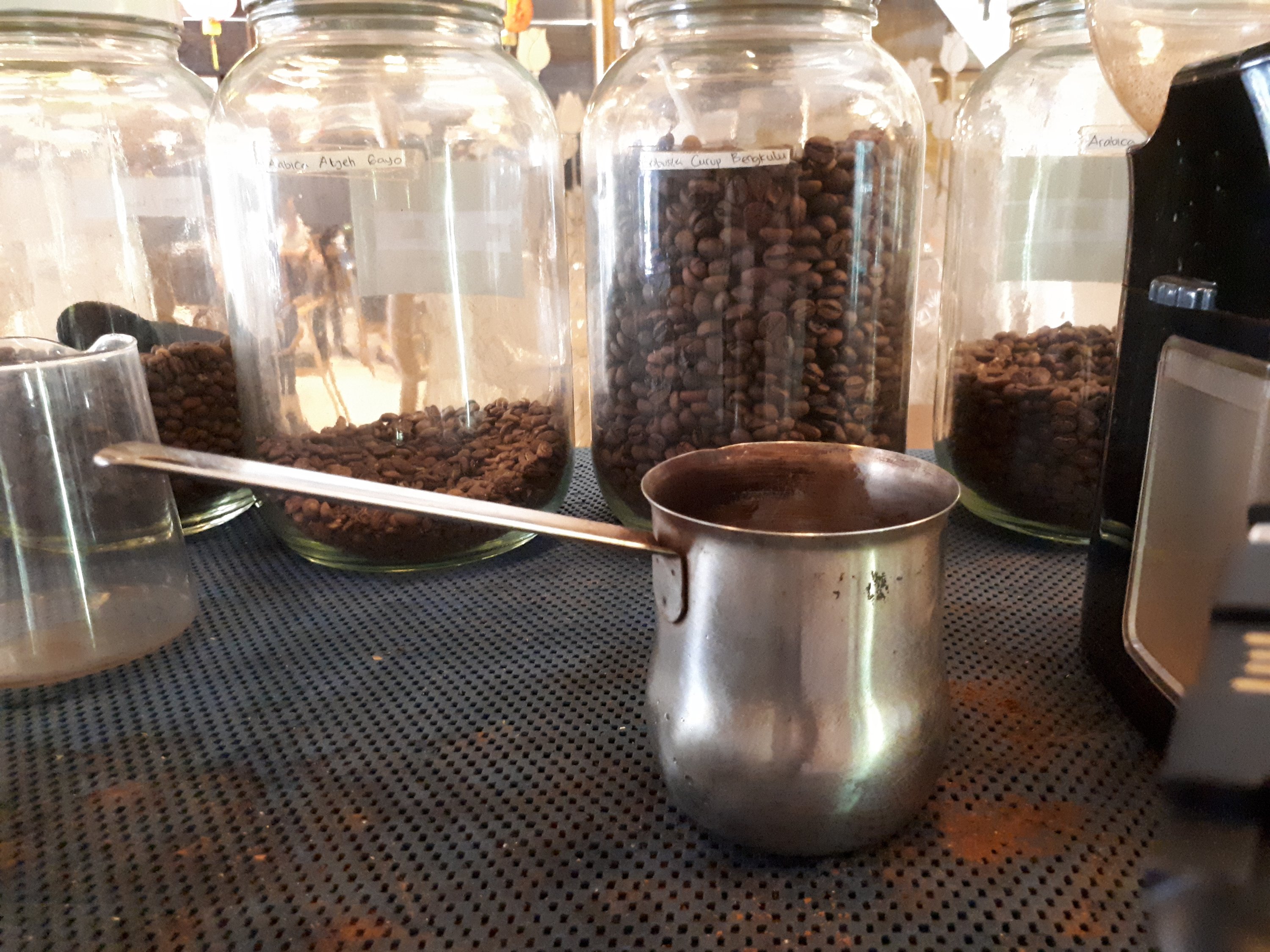 Diriku memilih posisi duduk dilantai atas karena leluasa menikmati suasana dan pemandangan dari sang barista dan koki yang begitu sigap membuat sajian makanan dan minuman. Menu bervariasi tapi tidak sempat baca rinci karena waktu yang terbatas, yang penting mencoba kopi aceh dan mie aceh.