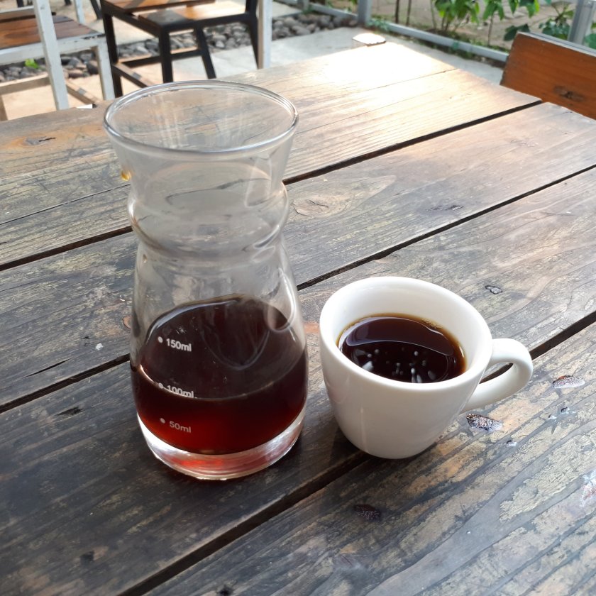 Hasilnya adalah sajian kopi dengan aftertaste berry sedikit manis-manisnya dan body serta acidity medium. Hanya saja dari sisi suhu agar kurang pas panasnya, mungkin sang barista ngejar agar aciditynya keluar, tapi itulah rasa yang ada.