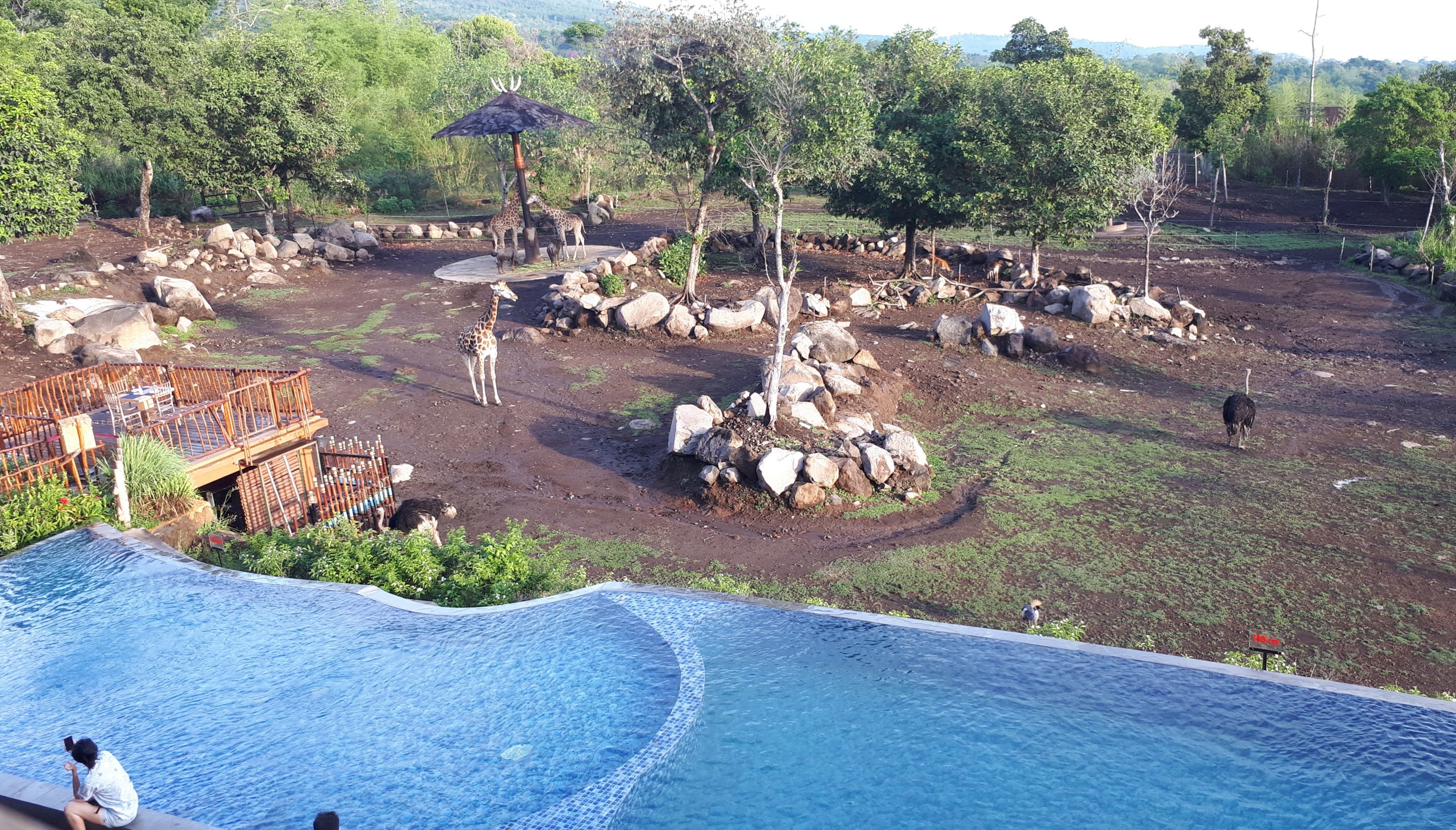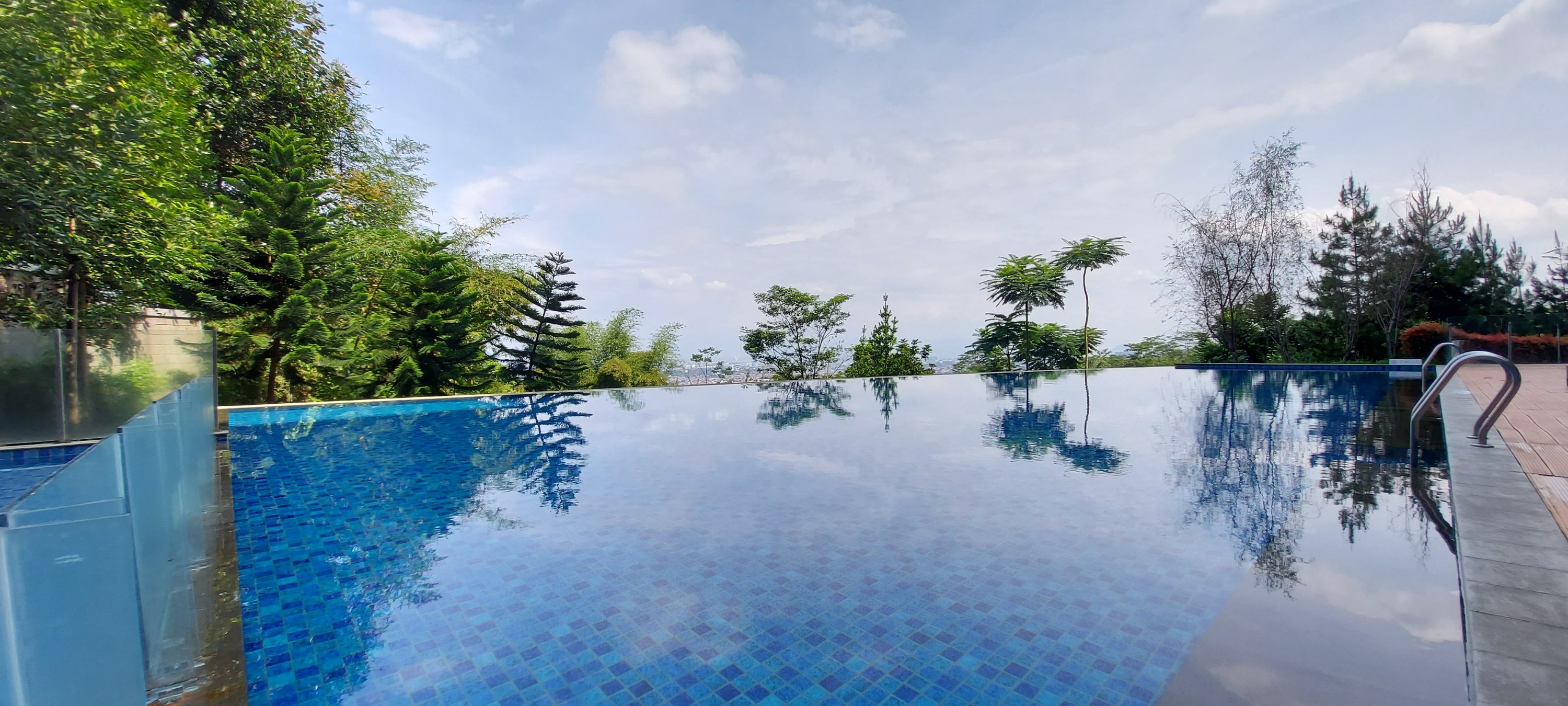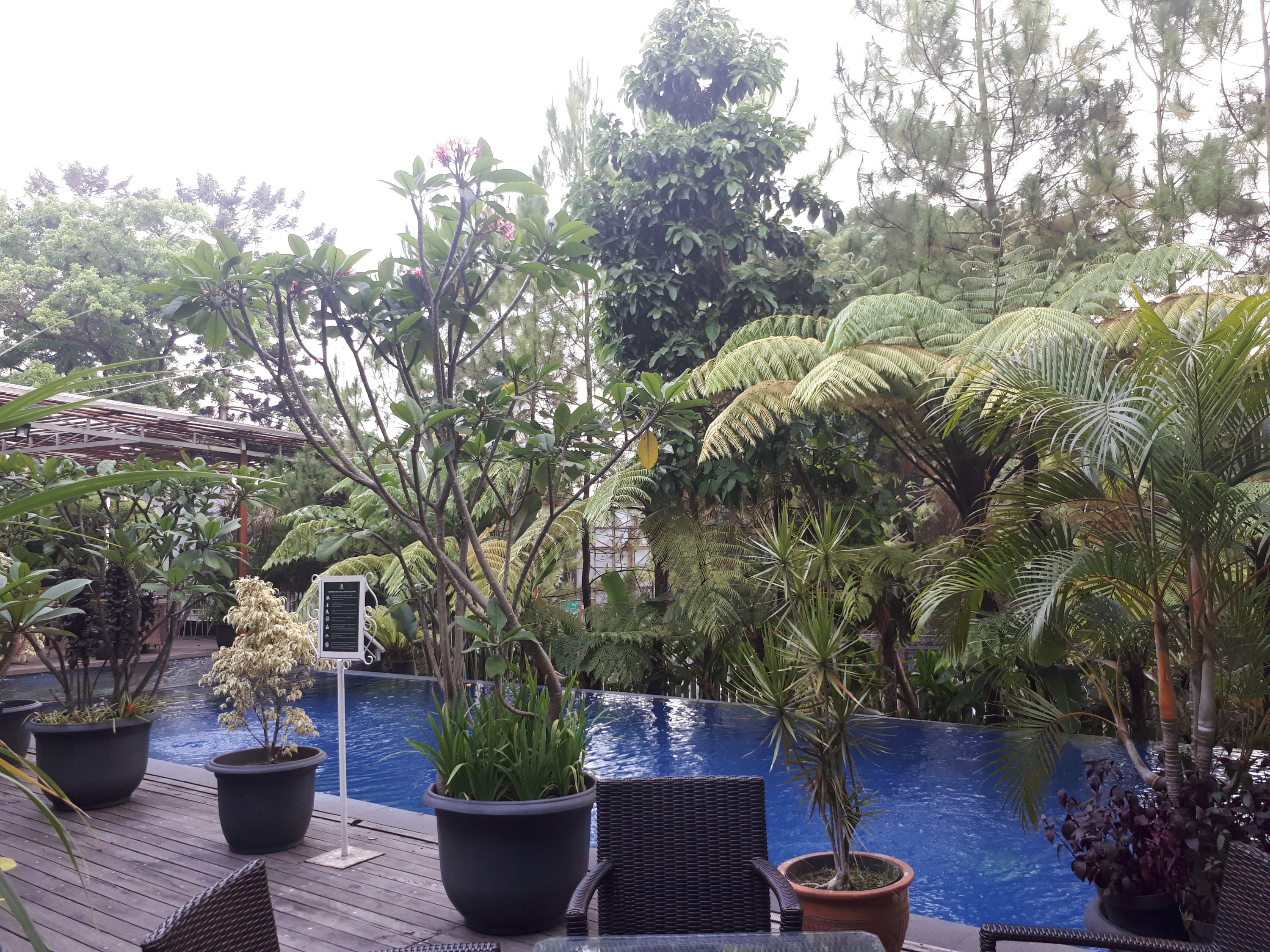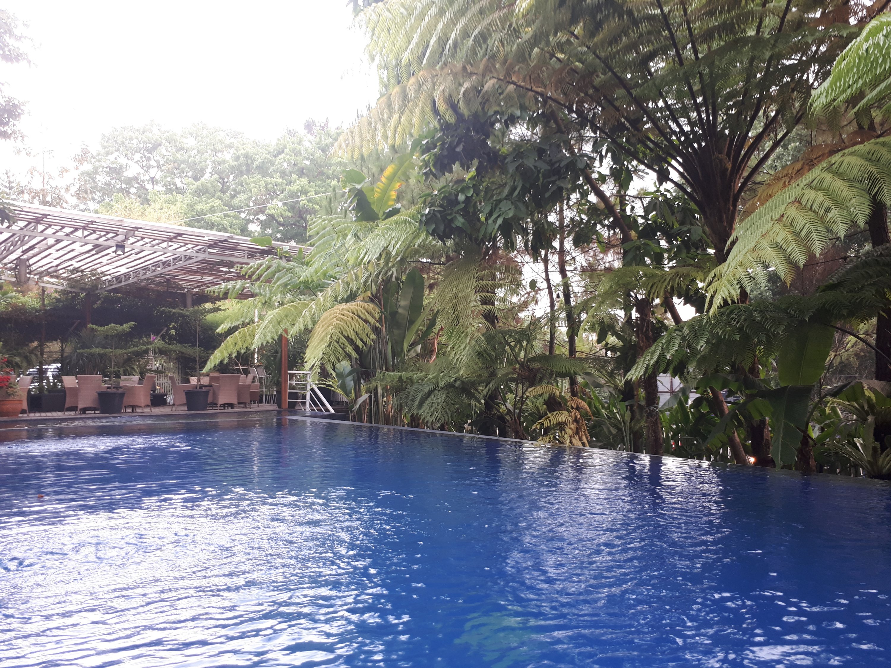 Tapiii…. ternyata setelah mengaduk-aduk bagasi mobil, celana renang dan kacamata tidak bersua termasuk tas khususnya. Berarti memang takdir tuhan belum bisa menikmati suasana berenang kali ini. Ya sudah tidak usah dipaksakan, tetapi sebagai pelipur kecewa maka raga tetap bergerak ke lantai 7 untuk merasakan suasana kolam renang secara langsung.