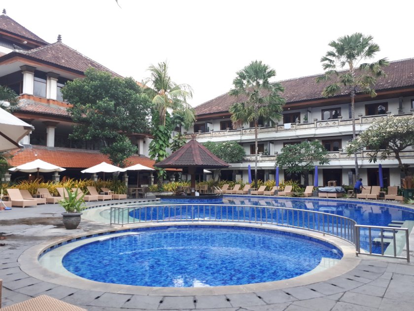 Inilah salah satu tempatnya, Sanken Pool & Sanken Bar. Sebuah kolam renang yang merupakan fasilitas hotel Inna Garuda Kuta di Bali ini memanjakan penginap untuk bersantai sejenak.