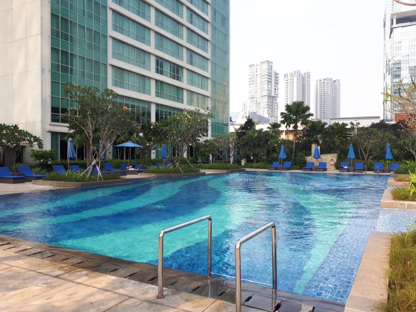 Menikmati segarnya suasana di Kolam renang Hotel Sheraton Bandung.