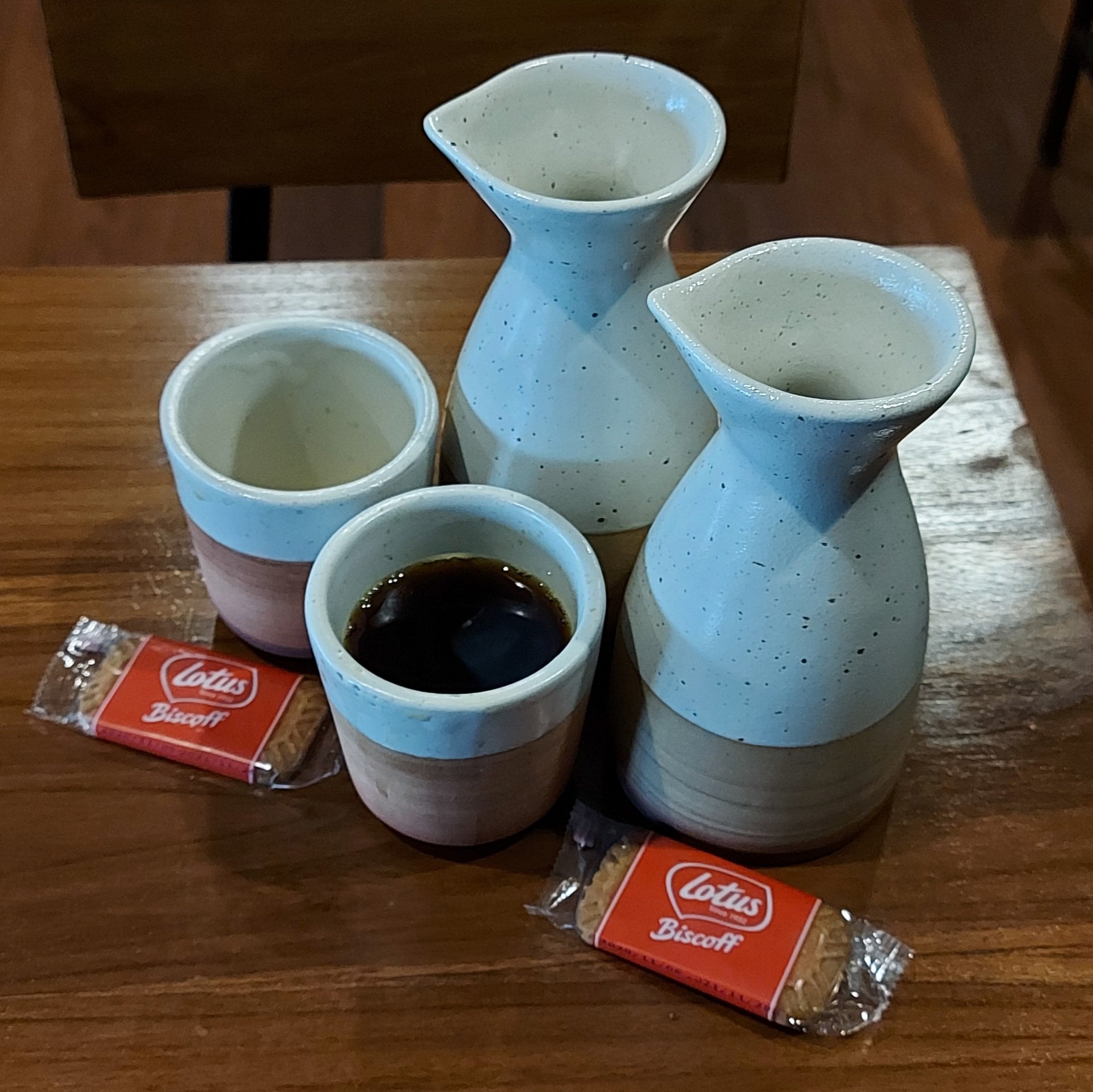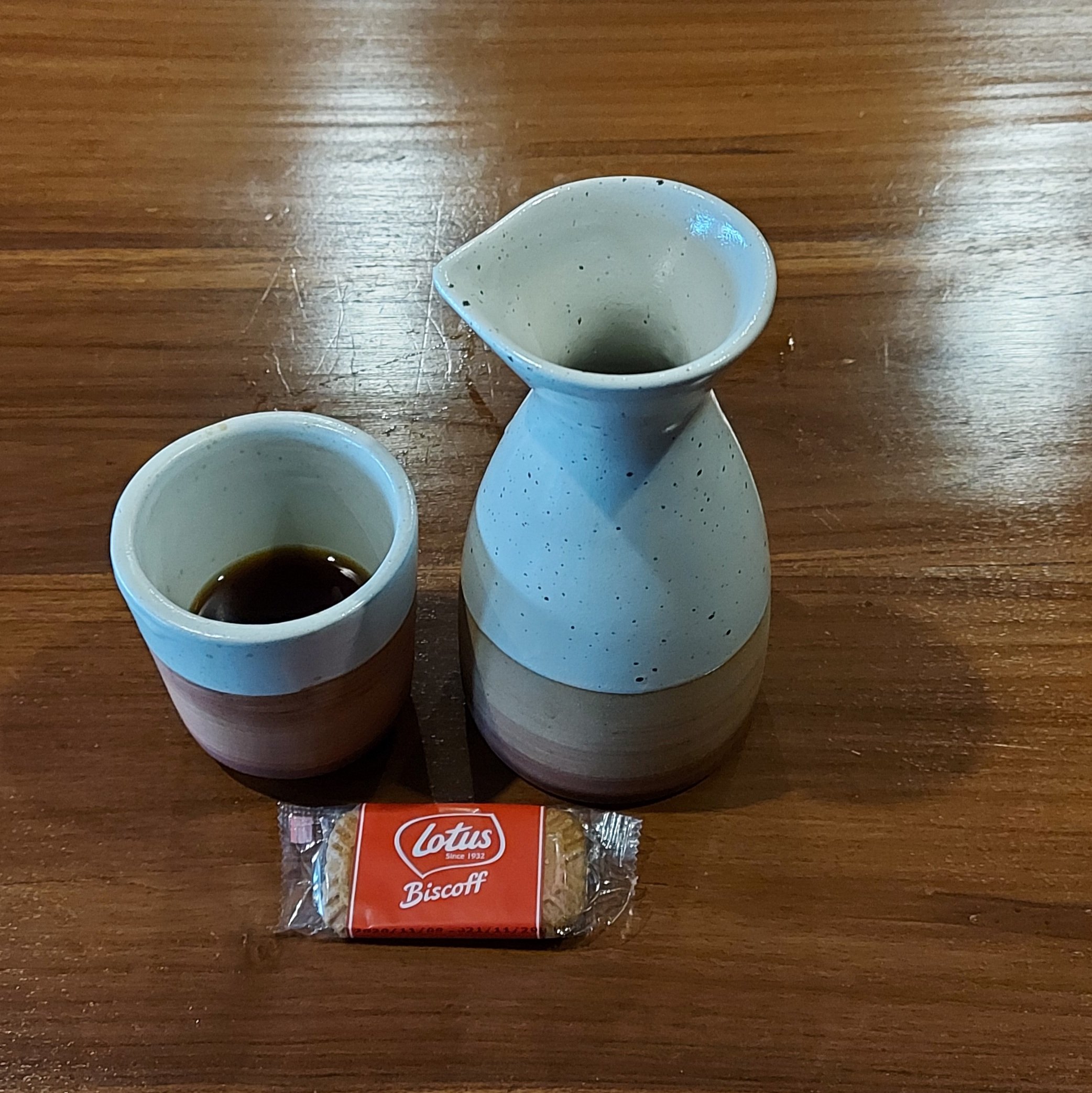 Padahal sebenarnya dalam sejarah tradisional di kampung halaman, menikmati kopi dengan menggunakan pisin atau tatakan itu adalah hal yang lumrah dengan tujuan membuat suhu air kopi panas itu segera turun. Kopinya di gelas biasa tapi pas mau diminum dituangkan ke pisin. Namun sekarang yang berbeda adalah posisi gelasnya yang disajikan sudah terbalik dan nyepot ke pisin. Sehingga perlu spesial effort pada saat membukanya perlahan.
