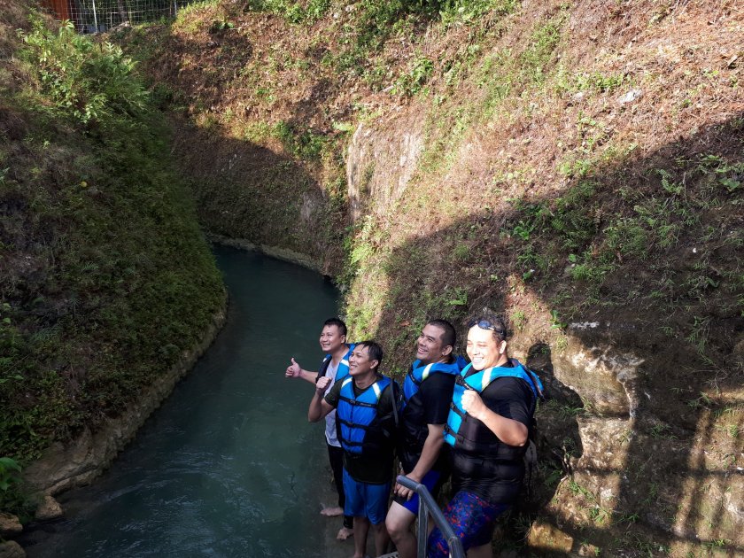 Sambil menunggu, menikmati suasana alam di sekitar cafe ini memberi rasa berbeda. Betapa kedekatan dengan alam disetting saling melengkapi dengan lanskap bangunan yang berfungsi sebagai hotel resort dengan berbagai kelengkapannnya.