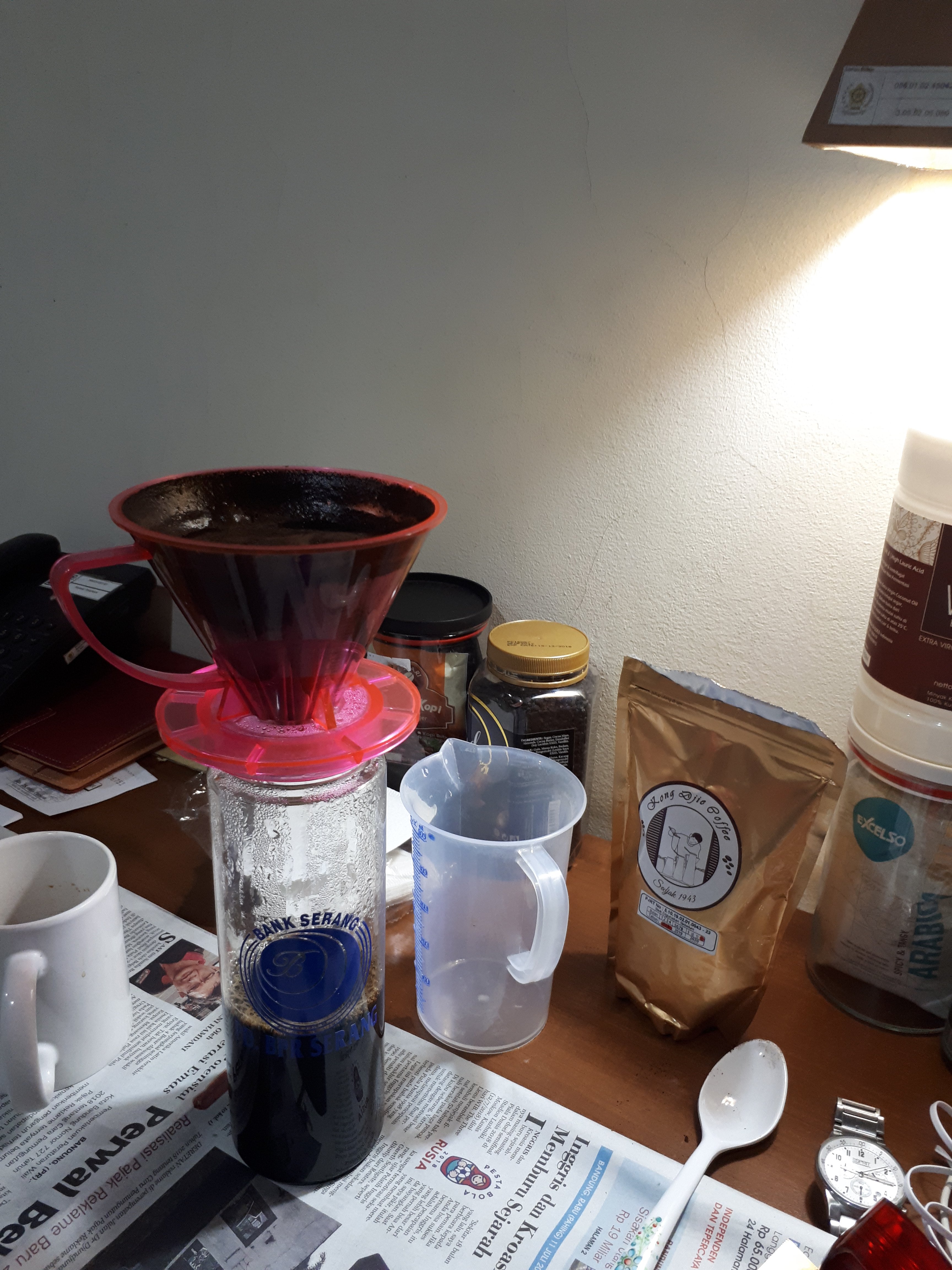 Seruput lagi ah….. pahiiit, meskipun tidak sepahit dikala seseorang pergi padahal sedang sayang-sayangnya…. addduh kok jadi belok kesinih. Tapi itulah sebuah kenyataan hidup, prosesi manual brew dan hasil akhir adalah sebuah gambaran bahwa kehidupanpun butuh proses dan sesekali harus siap menghadapi kenyataan pahit. Yakinlah bahwa dibalik kepahitan maka hikmah yang bisa diambil dan menjadi pelajaran penting untuk lebih dewasa dan bijaksana serta hati-hati dalam melanjutkan anugerah kehidupan ini. Have a nive weekend guys, Wassalam.(AKW).