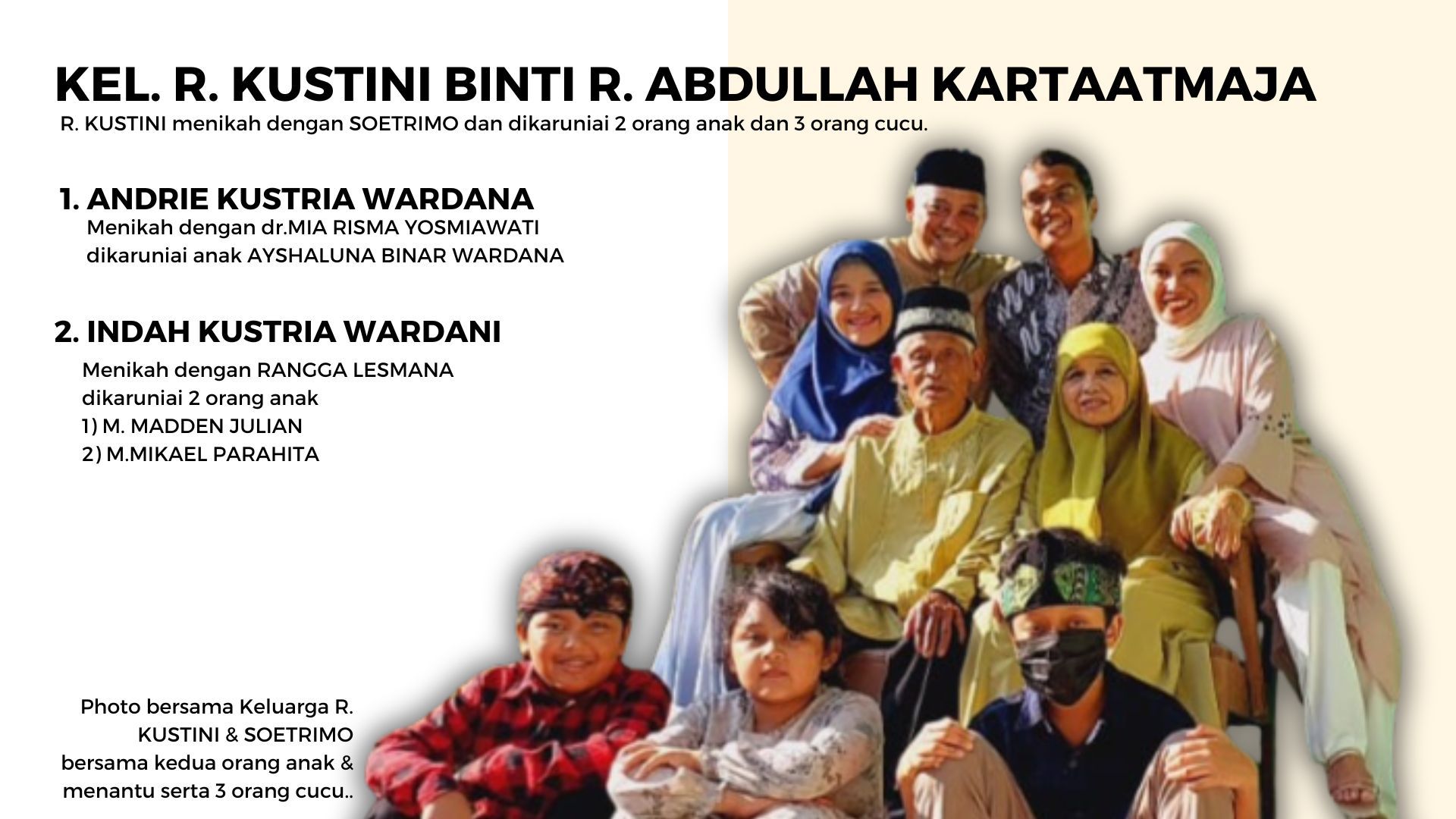 Dari G3 R. Kustini adalah Andrie Kustria Wardana dan Indah Kustria Wardana.
