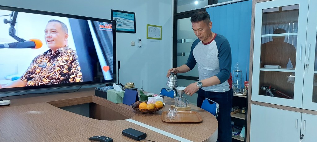 Bertandanglah waktu itu dalam koridor kedinasan yang namanya rapat koordinasi tambah basa-basi dan disaat bubar maka langsung menuju ruangannya disajikan kopi manual dan tentunya biji kopi asli yang digrinder mendadak, Yummy.