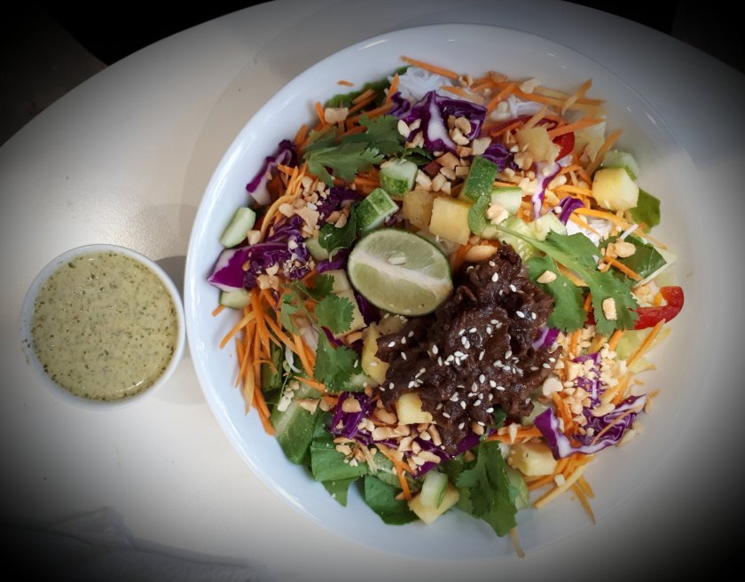 Rasa segar sayuran dipadupadankan dengan irisan buah nanas, lalu toppingnya ada daging ayam asap untuk caesar salad dan daging sapi untuk thai beef salad menghasilkan paduan rasa nikmat meskipun bagi yang belum biasa bisa terjadi kebingungan rasa di mulut. Tapi itu tidak lama, selanjutnya biasa kok.