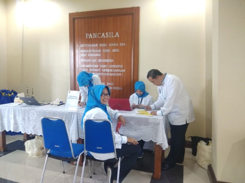 Meja penerimaan sudah siap di Terminal penumpang didepan counter keberangkatan…. langsung para tamu undangan yang semangat sambil tak lupa menunjukan undangan masing-masing. Kolaborasi Tim BIJB-EO-BiroSPIBUMD yang langsung dipimpin Pa Plt Kabiro menjadi petugas pelayanan tiket #salutpakbos.