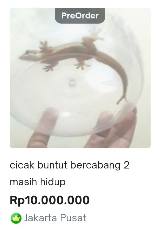 b. Ternyata kehadiran cicak berekor cabang dua ini bernilai ekonomi tinggi sehingga terdapat iklan penjualan cicak hidup berekor cabang dua di market place dengan banderol harga fantastis, 10 juta rupiah untuk 1 ekor cicak berekor cabang dua.