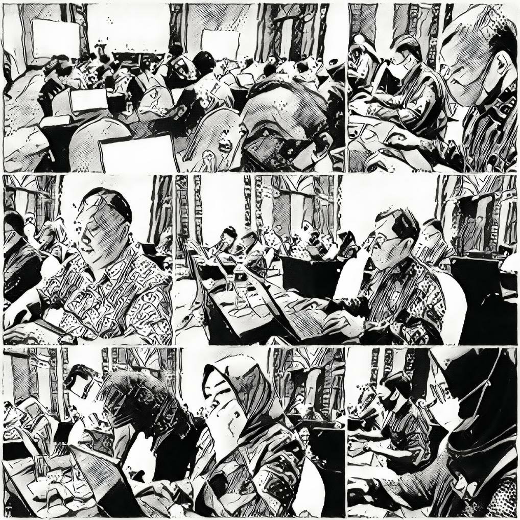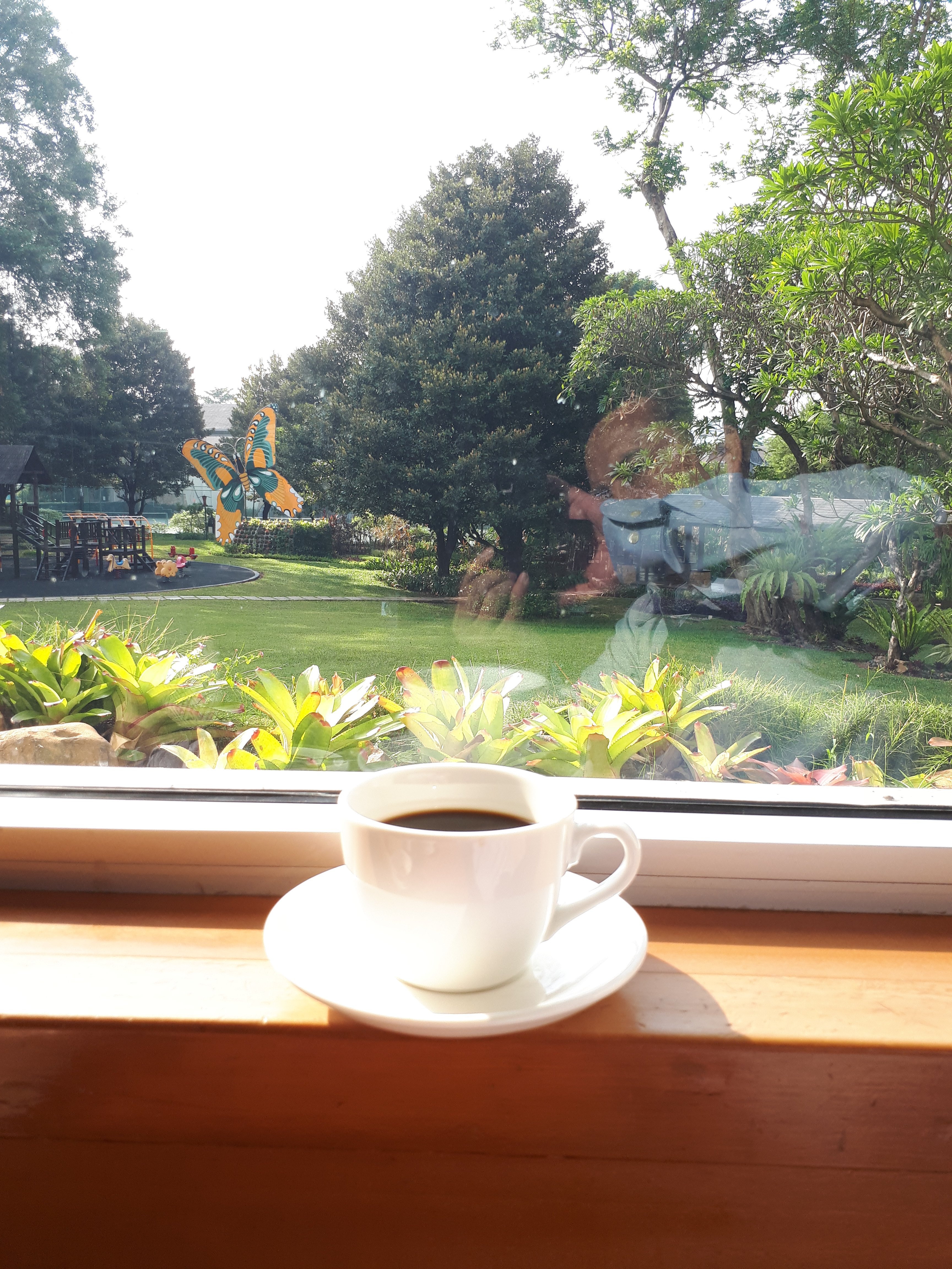 Tapi ketegangan tidak perlu memuncak dan jadi galau, cukup tarik nafas panjang dan membuka tas perlengkapan. Ambil tumbler kesayangan berbalut bambu karya ‘Virageawi’ lalu keluarkan juga gelas kaca kecil sebagai pendukungnya. Maka bersiap dikeluarkan isi cairan hitam kohitala (kopi hitam tanpa gula) yang sudah dipersiapkan sejak tadi pagi di rumah. Lengkap dengan gelas kecil kaca juga gelas kecil plastik, jikalau ada rekan atau kenalan baru yang berkenan ngopi bersama. Sruputtt.