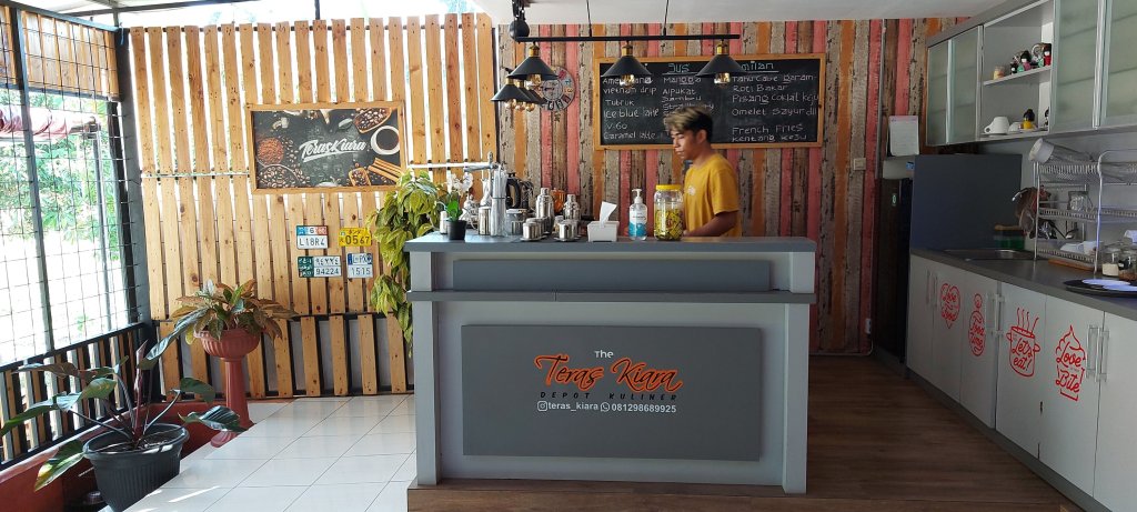 Namanya Teras Kiara, sebuah cafe asri yang bersih dan aman dari hinggar bingar keduniawian. Kebetulan pengunjung sedang tidak ada, maka leluasa memilih tempat dan mengambil spot photo serta meminta obat galau yang sangat manjur.