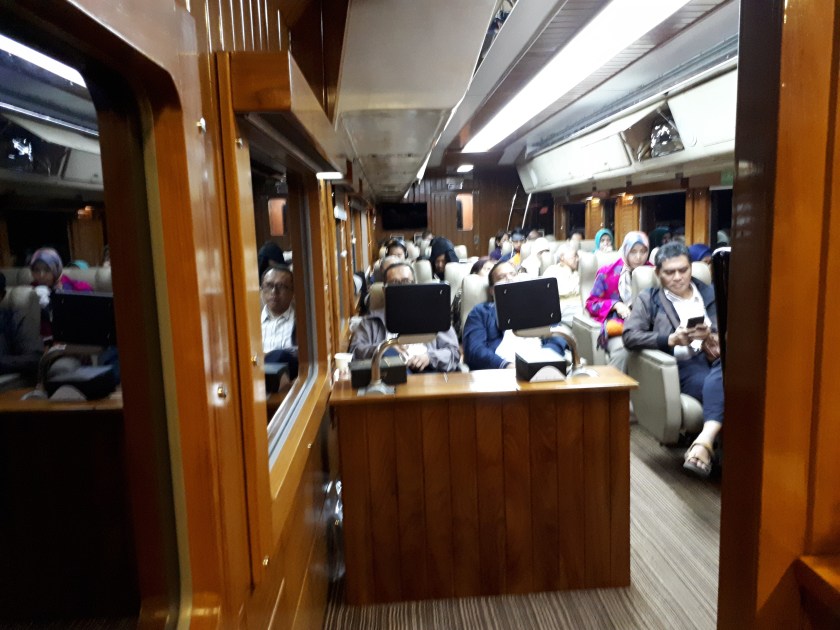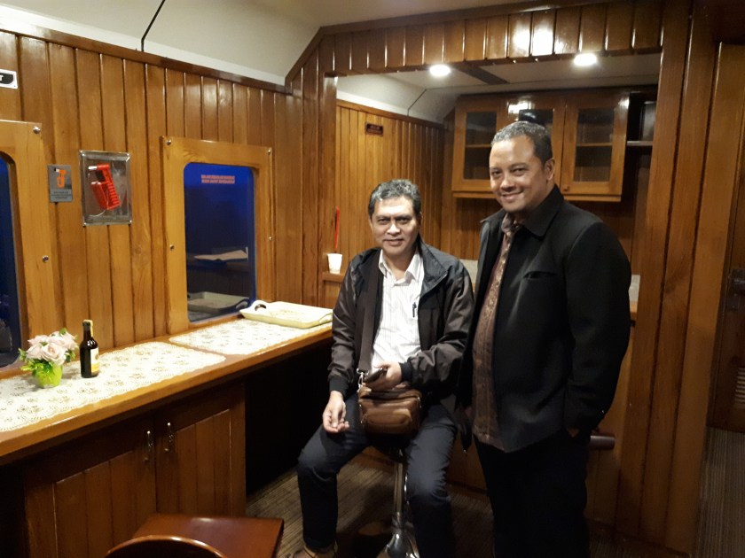 Naah… supaya kemunduran menuju tujuan ini terasa menyenangkan maka pesanlah kopi dari petugas restoKA yang akan datang melewati kita membawa dorongan makanan minuman dengan harga khusus… maksudnya khusus di kereta.
