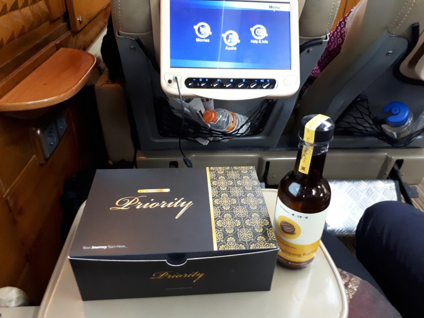 Ah sudahlah, sekarang saatnya menikmati kopi hitam ala KA Argo Parahyangan. Srupuut…. hmmmm.. nikmat. Body tebal dan getir menyambut, acidity praktis nggak ada, tastenya flat… ya begitulah. Tapi tetap aroma kopinya ada, dipastikan ini dasarnya kopi robusta.
