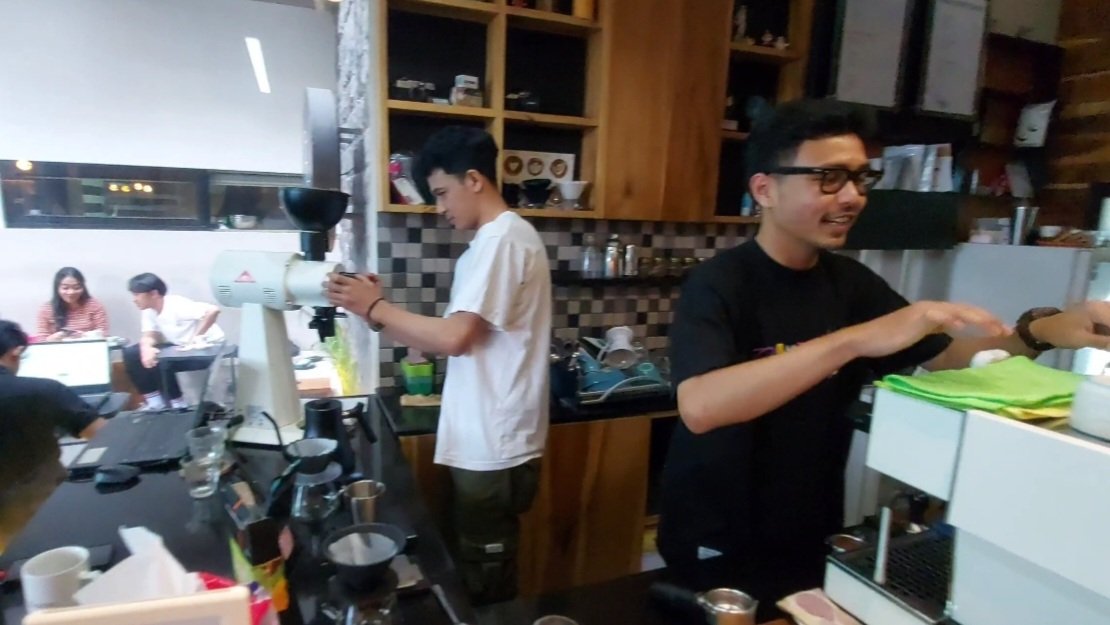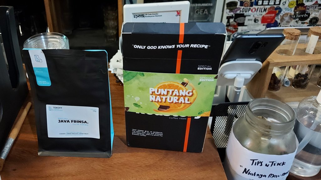 Setelah itu barulah beranjak pada tahap kedua yaitu mencari stok biji kopi yang tersedia dan langsung menggelar prosesi penyeduhan kopi dengan menggunakan filter V60. Disaat membuka kotak stok kopi ternyata ada 2 jenis kopi yang ada yaitu Arabica Papua Pegunungan Bintang dan Arabica fullwash maribaya Tonas Kopi. Maka dikala memegang biji kopi tetsebut bayangkanlah sebagai bentuk emosi suudzon kita tentang apa yang terjadi dan mari kita hancurkan dengan grinder kopi sehingga menjadi serpihan biji kopi dan harapan untuk diseduh menghasilkan rasa kohitala yang mendamaikan.