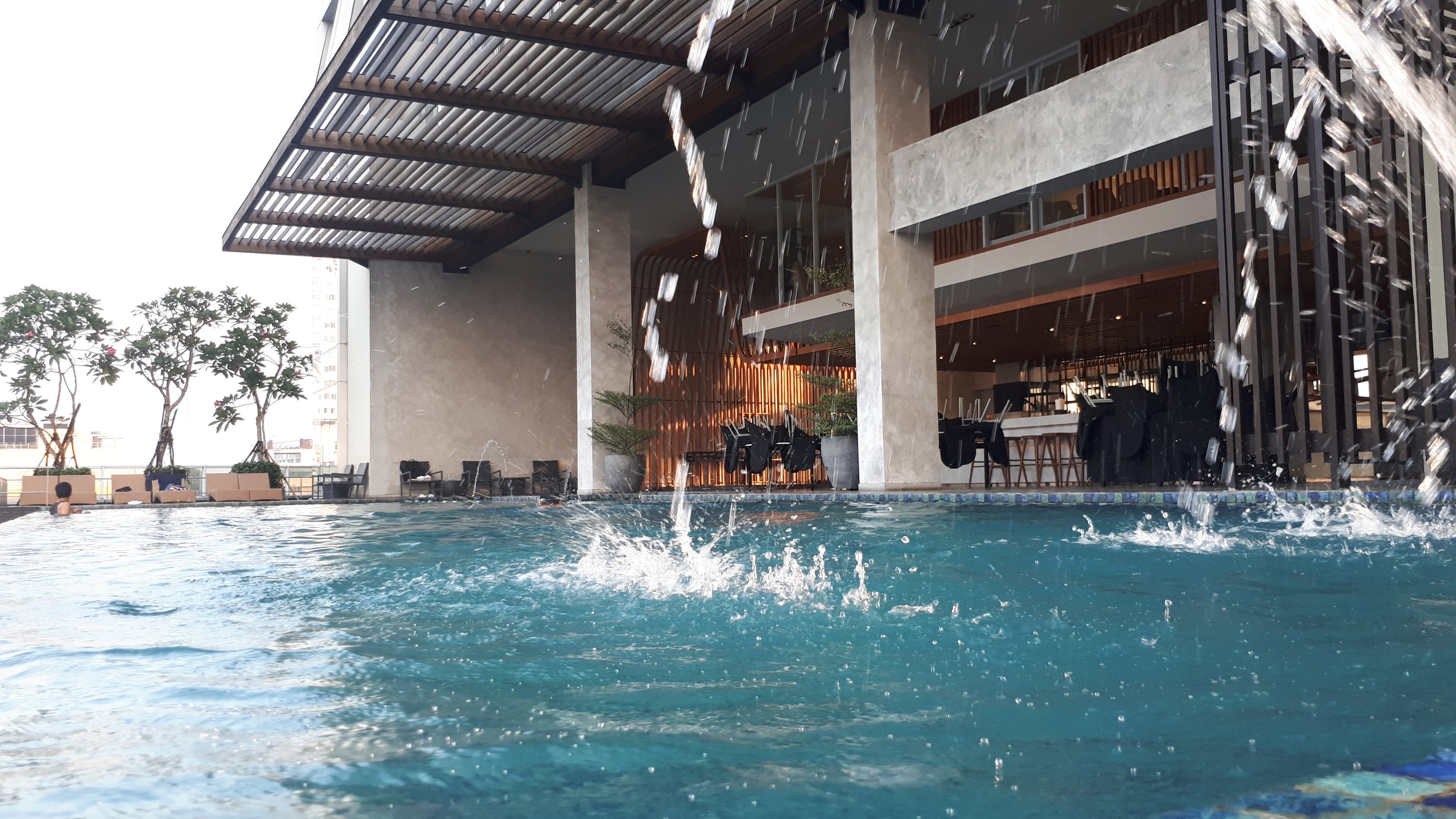 Melewati pintu kaca dan berjumpa dengan gemericik air kolam renang yang menenangkan jiwa dan mengajak raga untuk bercengkerama.