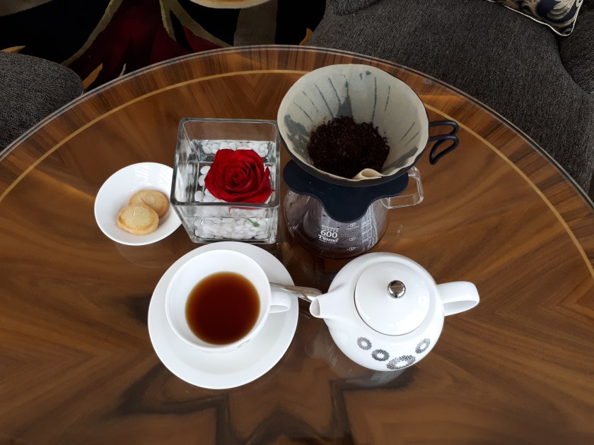 Sayangnya manual brewnya blum ada, padahal suasana mendukung banget buat nikmatin manual brewnya….. tapi sedikit terobati dengan secangkir espresso dan secangkir americano. Urusan harga ya menyesuaikan dengan hotel berbintang di kisaran Rp 40rb sd 50rb per sajian.