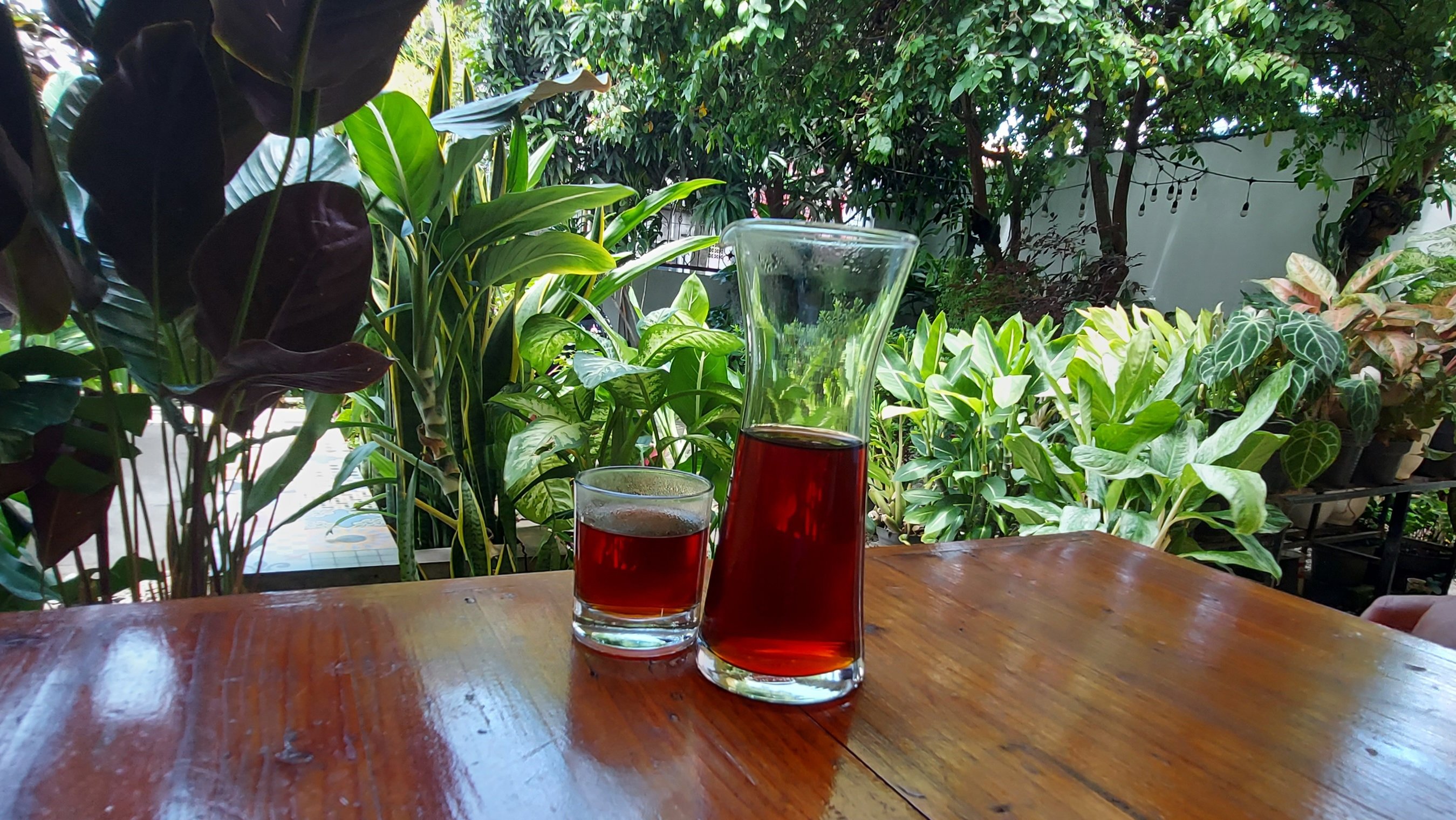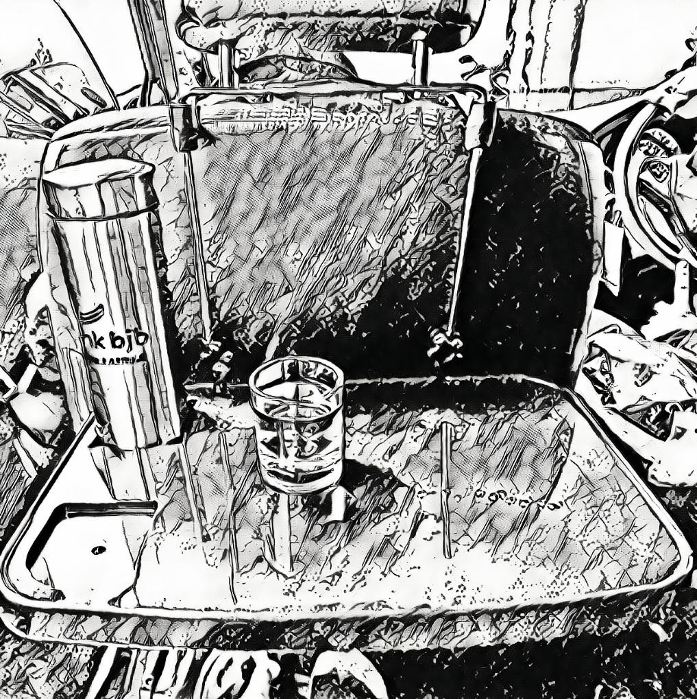 Tapi ketegangan tidak perlu memuncak dan jadi galau, cukup tarik nafas panjang dan membuka tas perlengkapan. Ambil tumbler kesayangan berbalut bambu karya ‘Virageawi’ lalu keluarkan juga gelas kaca kecil sebagai pendukungnya. Maka bersiap dikeluarkan isi cairan hitam kohitala (kopi hitam tanpa gula) yang sudah dipersiapkan sejak tadi pagi di rumah. Lengkap dengan gelas kecil kaca juga gelas kecil plastik, jikalau ada rekan atau kenalan baru yang berkenan ngopi bersama. Sruputtt.
