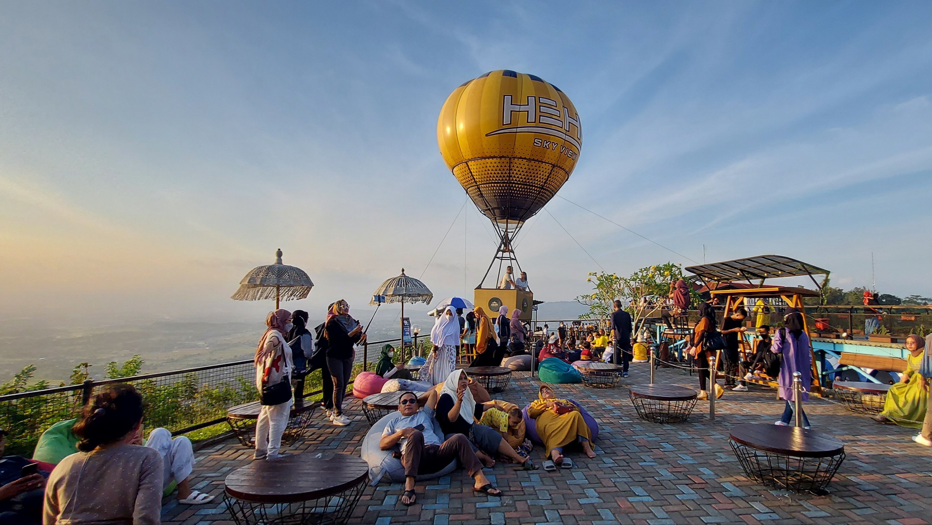 Masuk ke HEHA sky view membayar Rp 20.000 per orang dan didalamnya bisa berjalan-jalan mencari posisi dan spot menarik sesuai keinginan terutama pemandangan sunset yang katanya begitu spektakuler. Tapi karena terlalu banyak orang, sulit mengabadikannya. Ya sudah apa adanya saja.